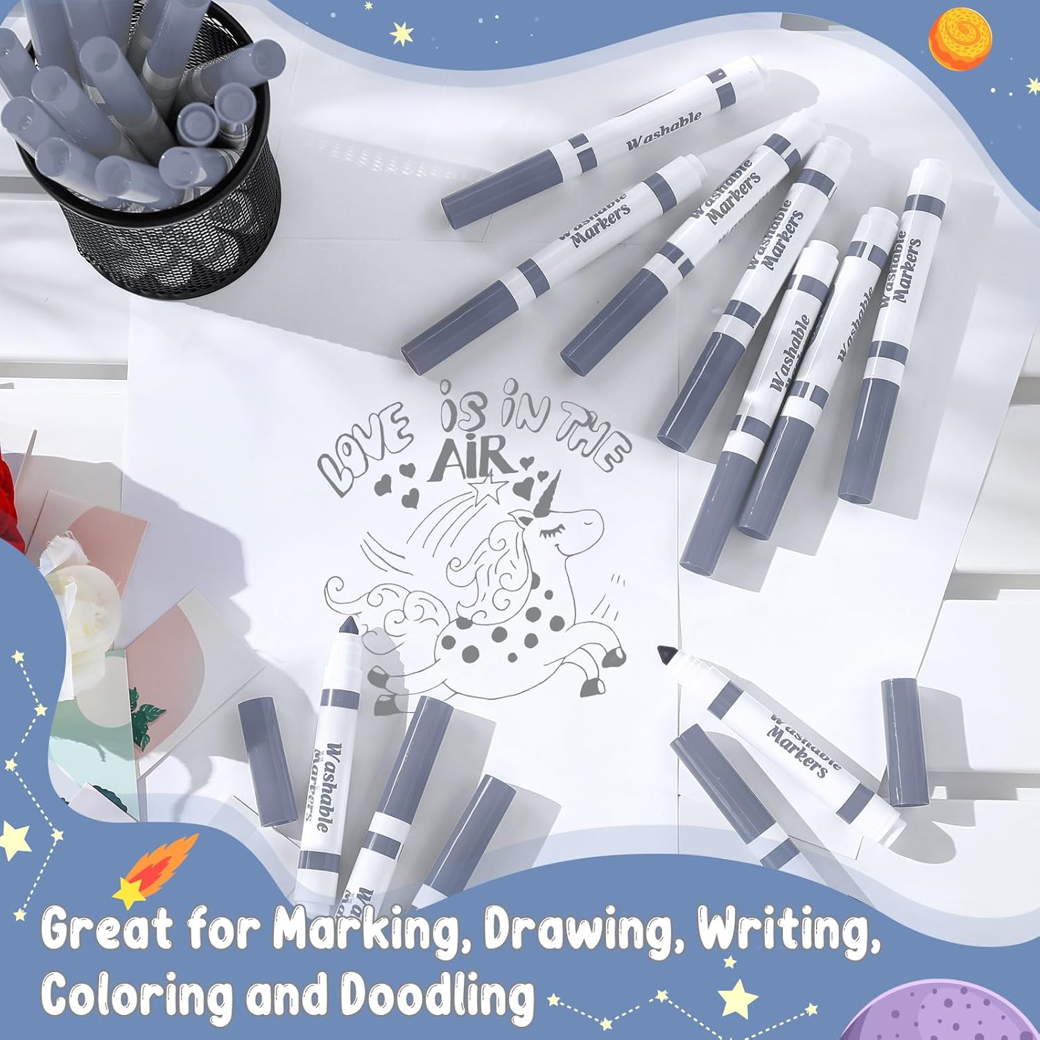 - Versatile Conical Tip Design: the tip of these washable markers adopts a conical design, ideal for coloring empty areas with the sides, and also for drawing thin lines or dots; This can help children fully demonstrate their imagination and creativity