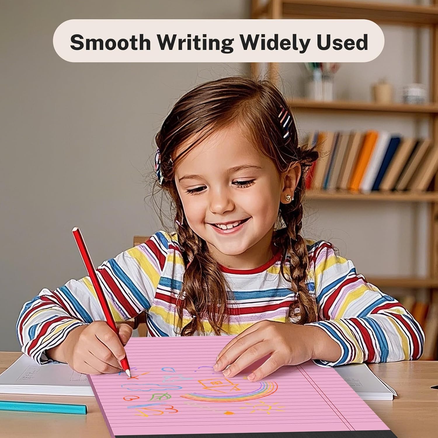 - 【 Double-Sided Pink Paper】 The line spacing of pink paper 8.5 x 11 is 11/32", 27 lines per page, 30 sheets/ 60 pages.The note pads 8.5 x 11 are thickened and can be used on both sides, allowing you to make the most of each sheet before using new ones.The Wide Ruled legal paper provides plenty of writing space to meet your different ideas and writing needs.Keep your writing flowing while preventing ink from oozing out.