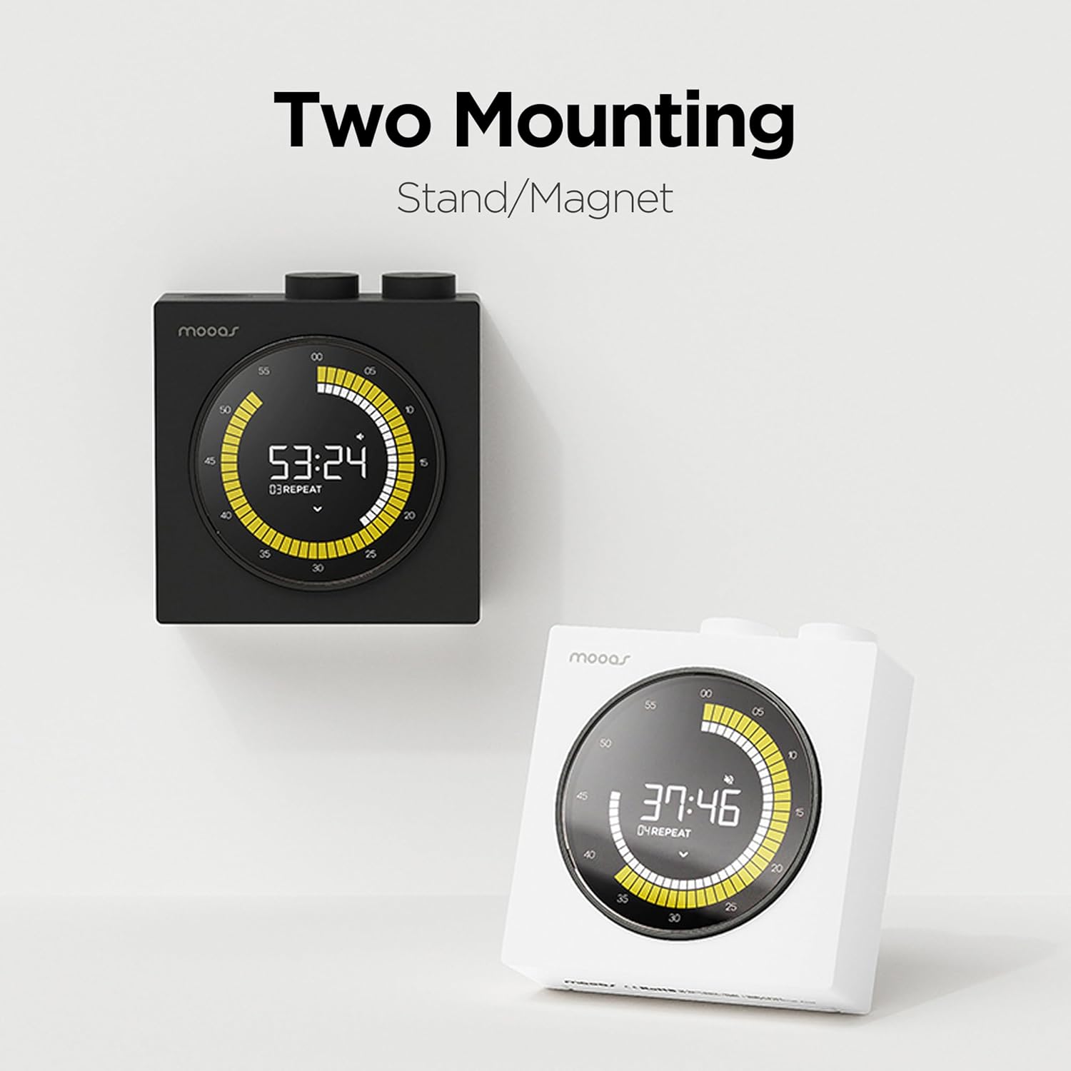mooas Time Loop Digital Visual Timer, Rechargeable Wireless, LCD Large Display, Portable, Visual Timer, Brightness Adjustment, Count Up/Down, Pomodoro Timer for ADHD, Study, Home Schooling (Black)