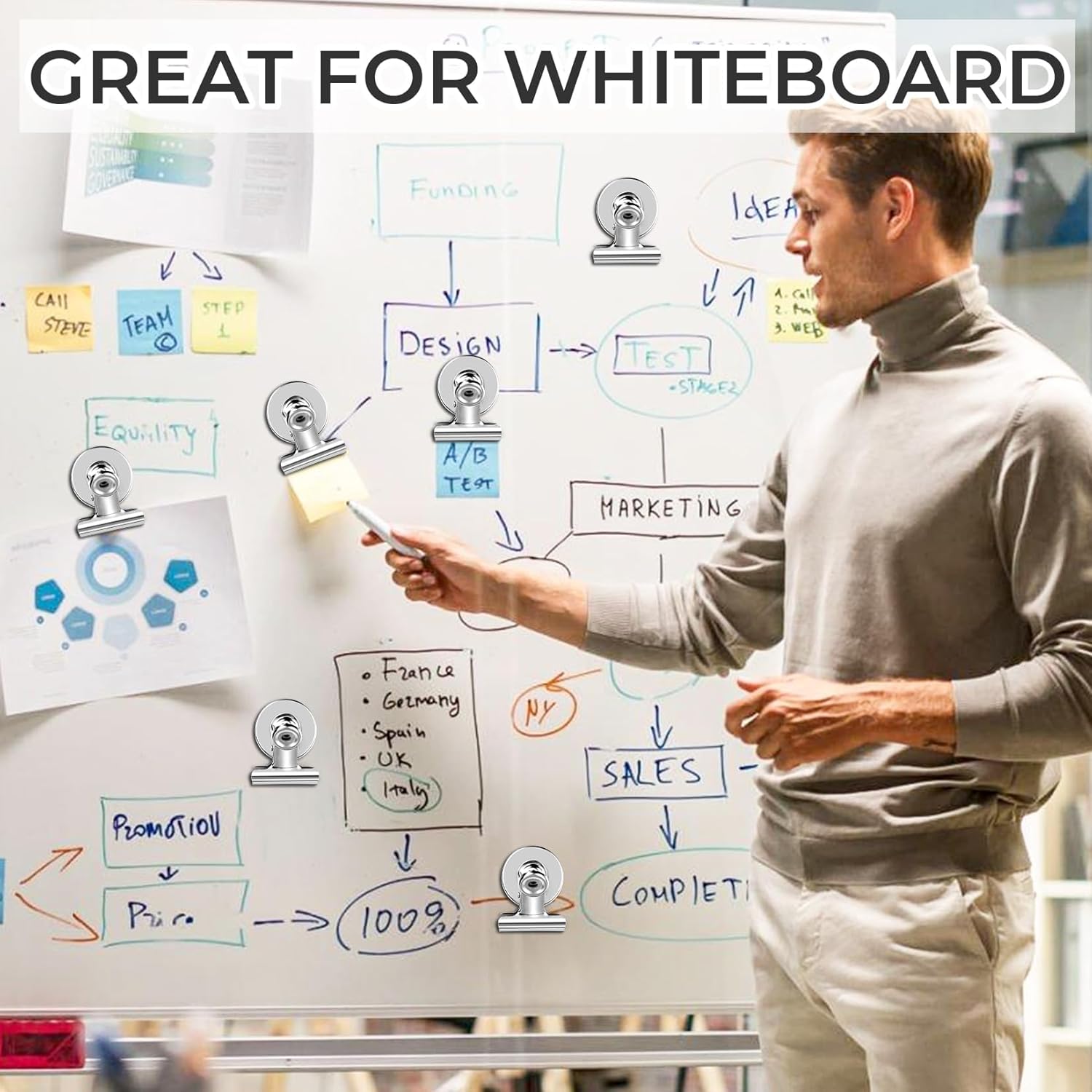 - Strong and Secure: Experience the power of heavy-duty magnetic clips. Safely hold over 25 sheets of A4 paper, preventing slips or falls on any metal surface.