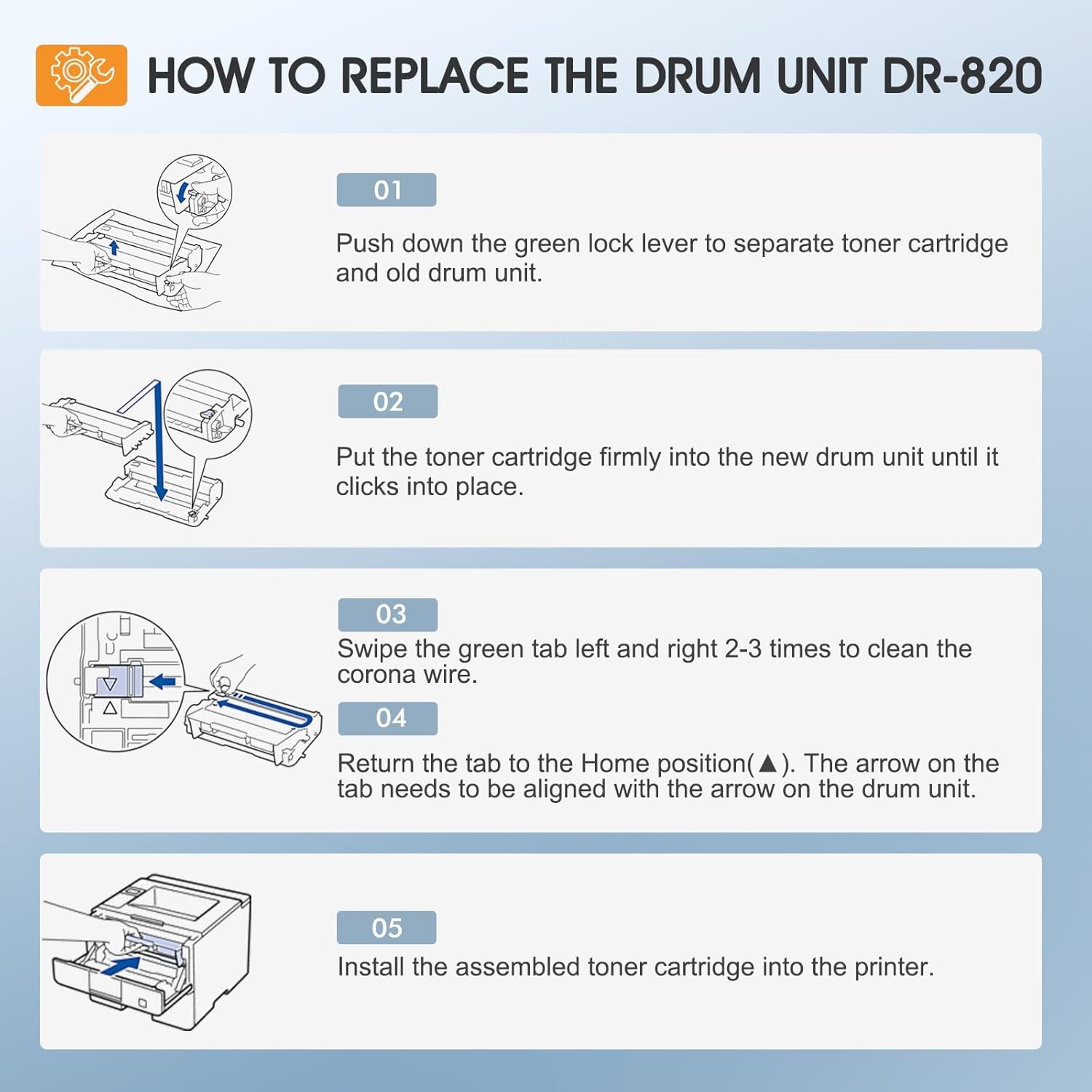- Included: Cool Toner Compatible for Brother DR820 DR 820 DR-820 Drum Unit 2 Pack (Not toner cartridge), and needs to be used together with TN820/TN850 toner cartridge