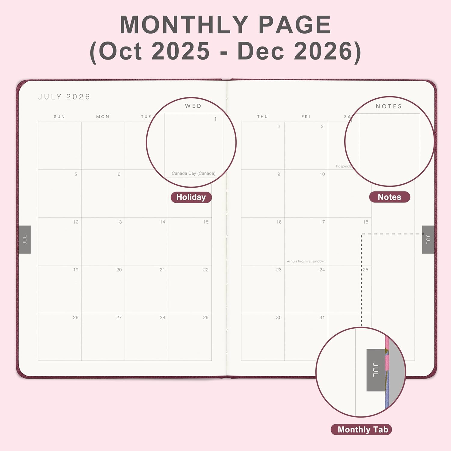- MONTHLY OVERVIEWοΌEach date box provides enough writing space, including a display of holidays for each month, and the right notes row is additional planning space. 2 Ribbon bookmarks and month displays for easy navigation and lookup.