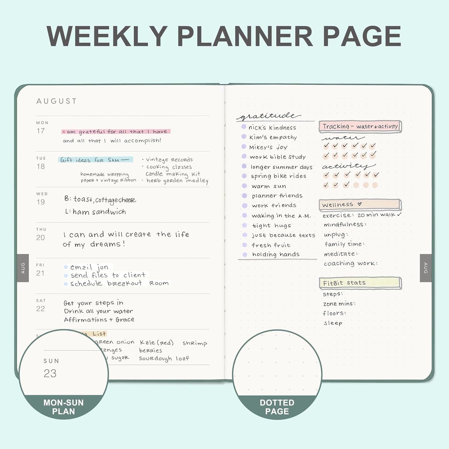 - WEEKLY VIEWοΌFrom Monday to Sunday, it provides ample space for line writing, and the dotted page on the right can be used to design and paint, which is easy to manage daily tasks.