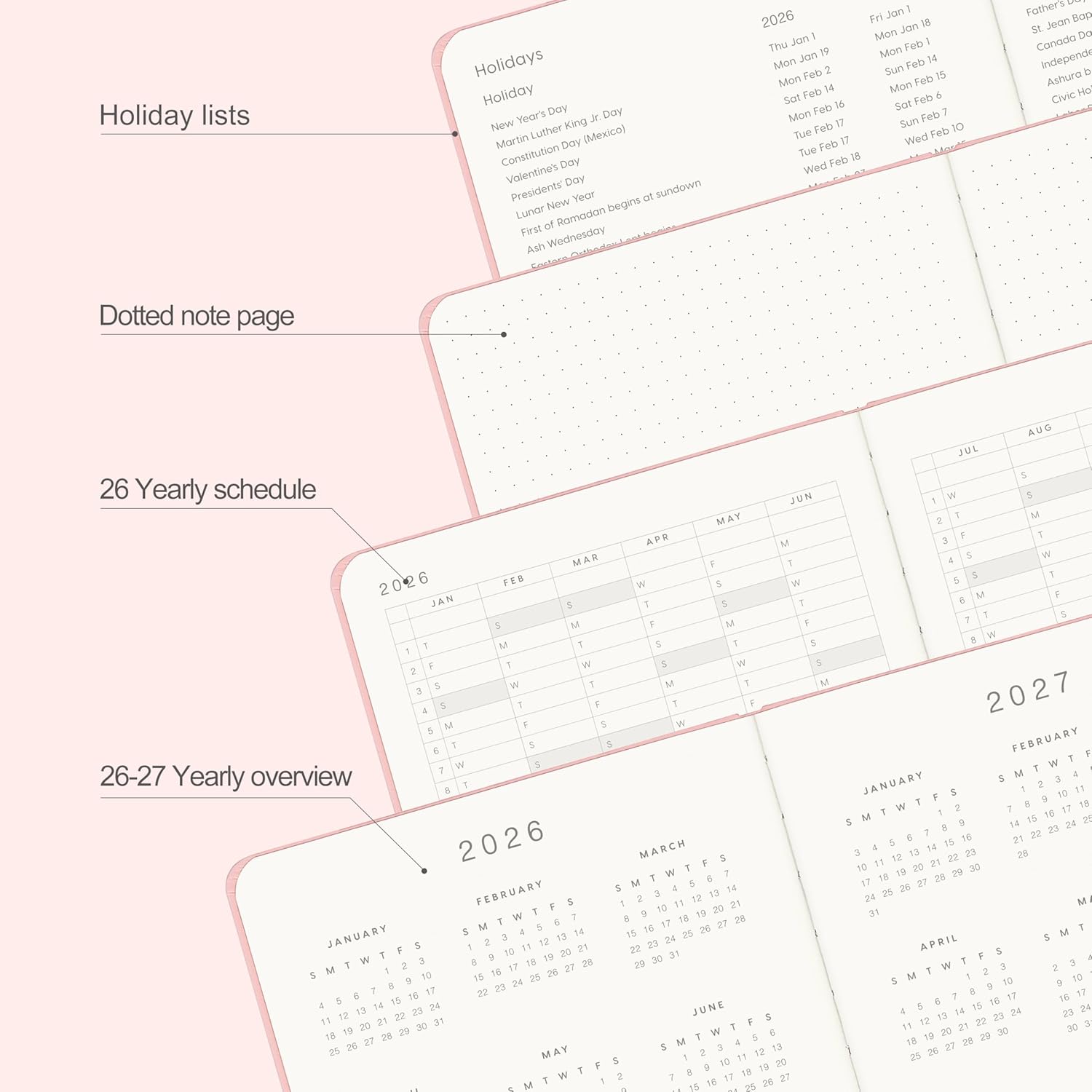 - MONTHLY OVERVIEWοΌEach date box provides enough writing space, including a display of holidays for each month, and the right notes row is additional planning space. 2 Ribbon bookmarks and month displays for easy navigation and lookup.