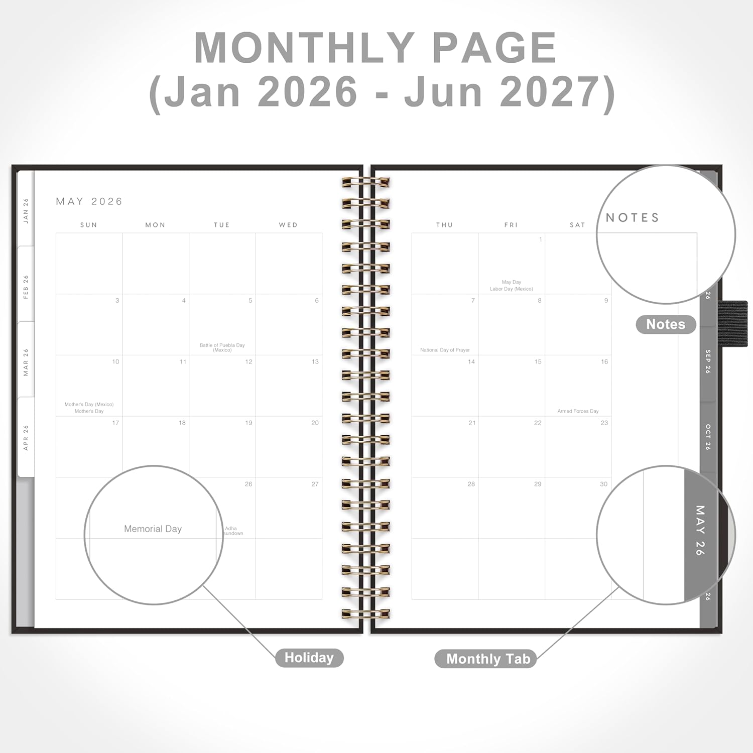 - 18-MONTH MONTHLY PLANNER: This 18-month monthly calendar planner (8.5" X 11"), covering from January 2026 to June 2027, has monthly & weekly planning pages for long-term planning.
