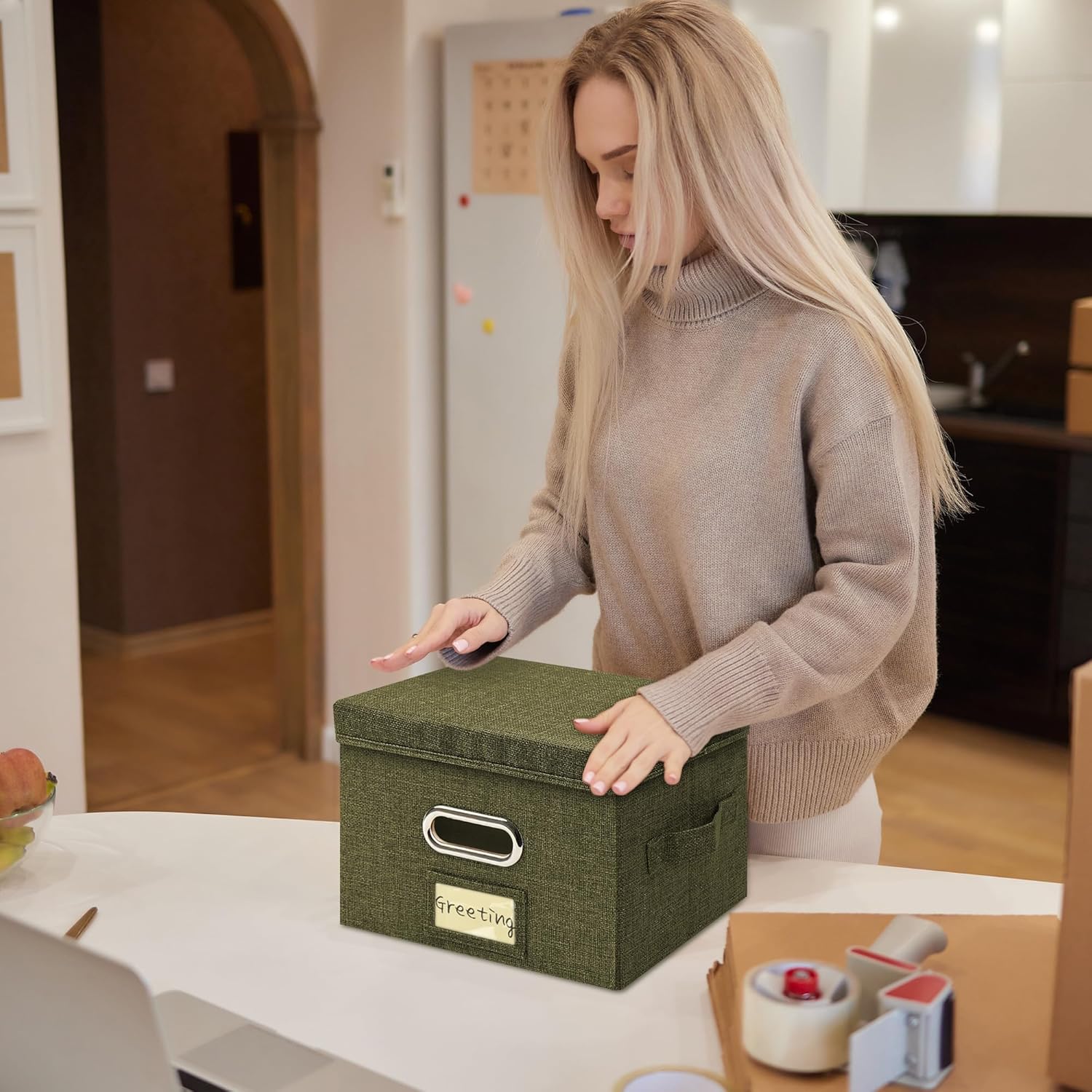 - High-quality Materials: The storage box is made of high-density board, wrapped in linen fabric, giving it a vintage and elegant look. It is sturdy and durable, resistant to wear, providing a safe, dry, and tidy environment for your greeting cards