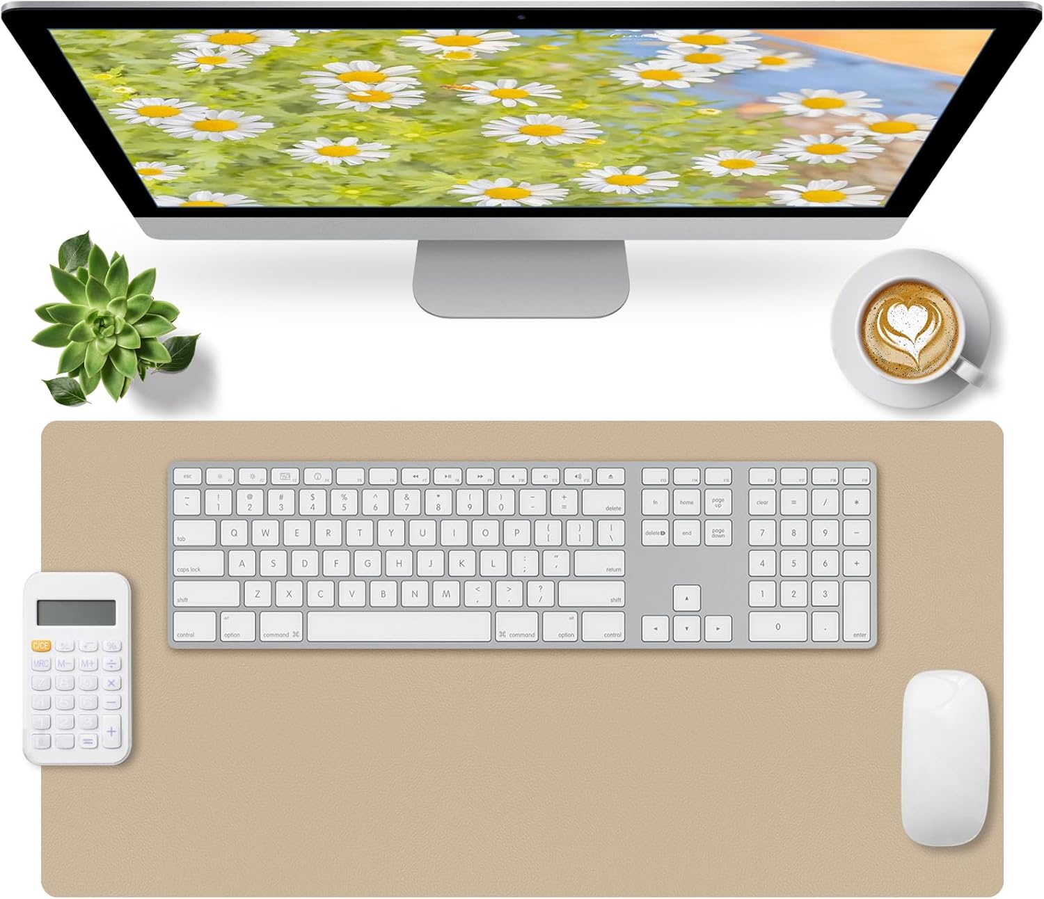 Bloss Beige Desk Mat 23.6" x 13.8", Desk Matt for Desktop, Large Leather Mouse Pad Waterproof, Computer Mat for Office Work/Home/Decor/Protector