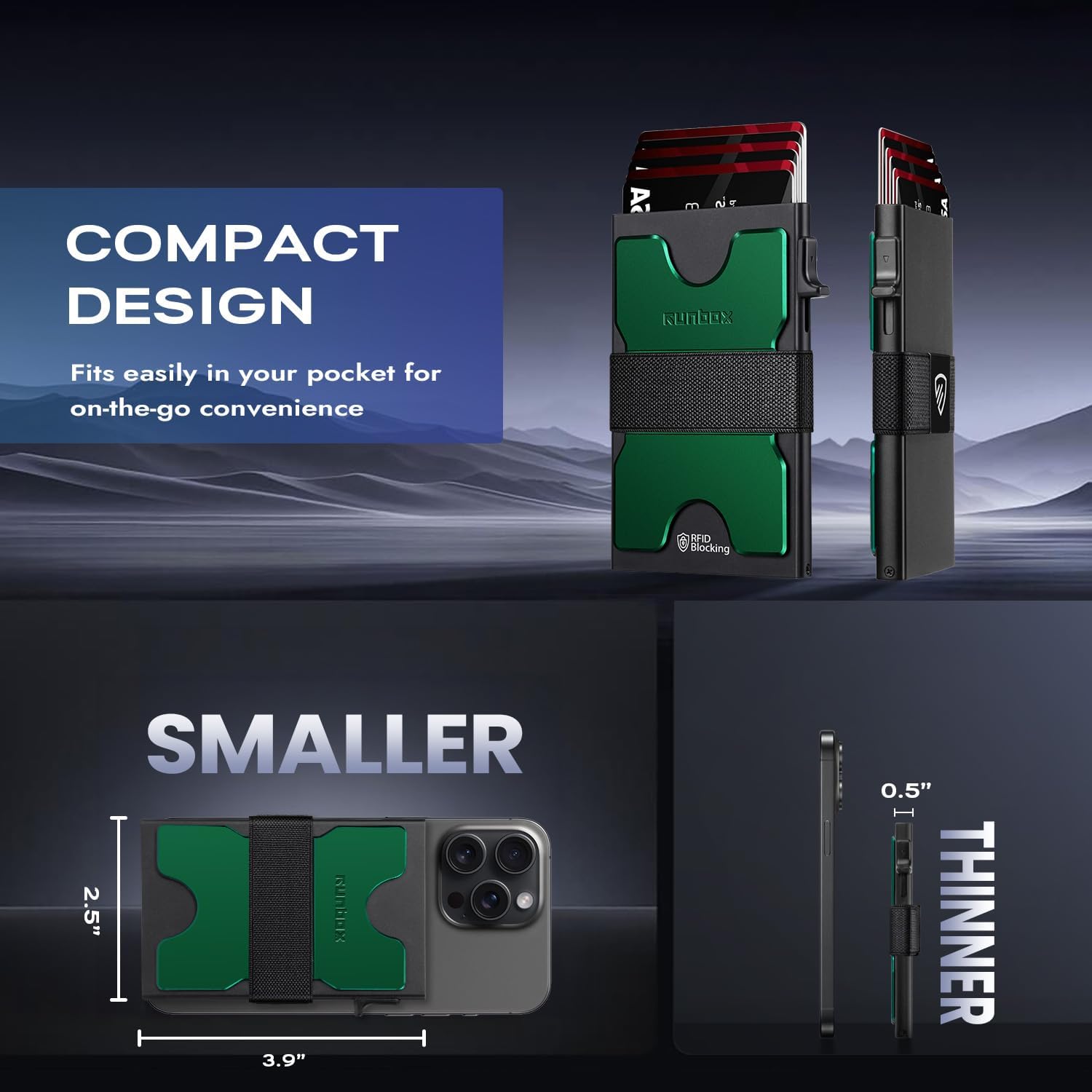 - Quick Access & Expandable Capacity (Holds 1-12 Cards): Experience effortless card access with our patented pop-up button mechanism β press to instantly eject cards. The main aluminum card holder compartment holds 4-6 cards(depending on embossed designs), while the expandable metal backplate adds 6-8 extra slots. *Total capacity varies with card thickness