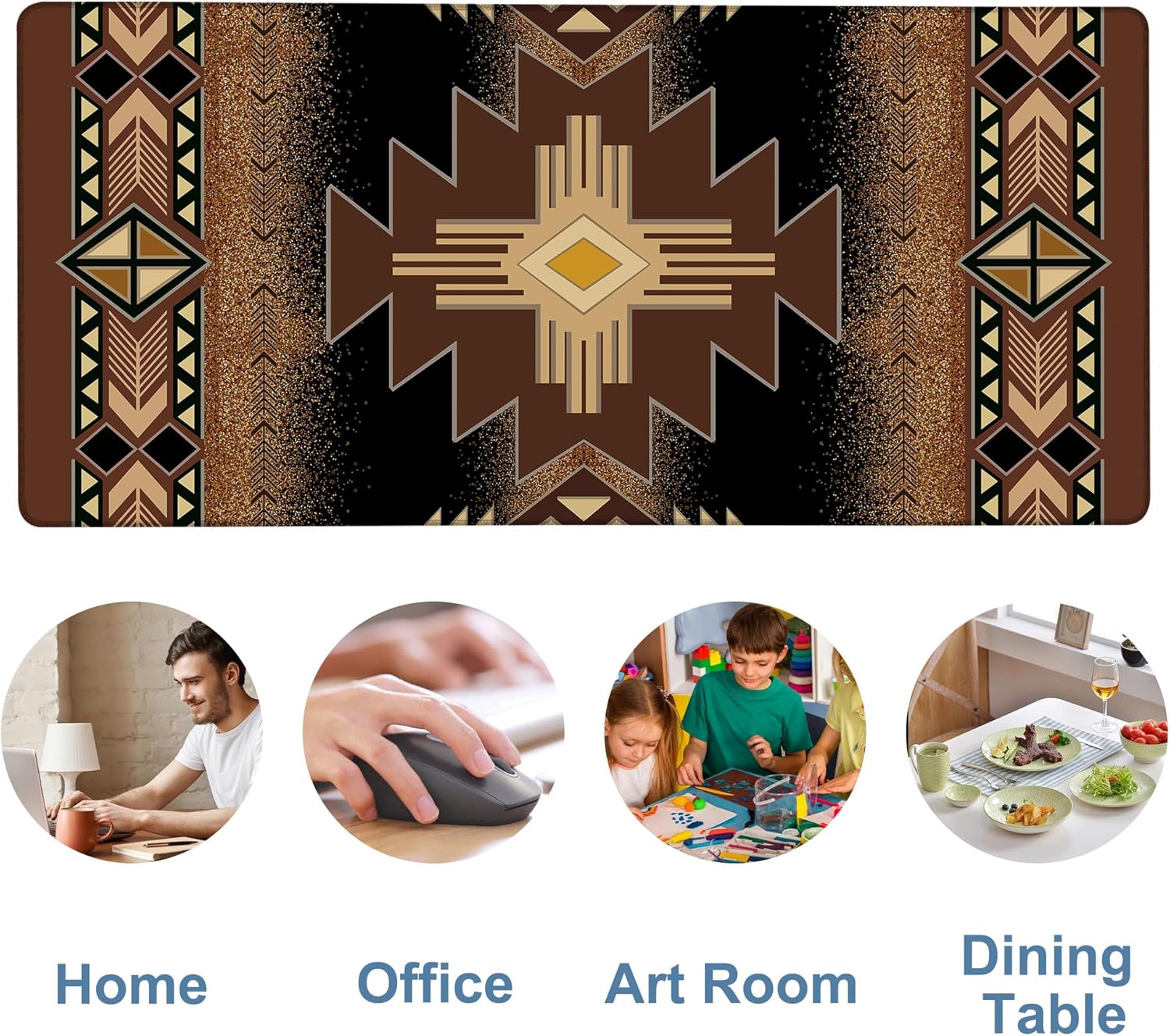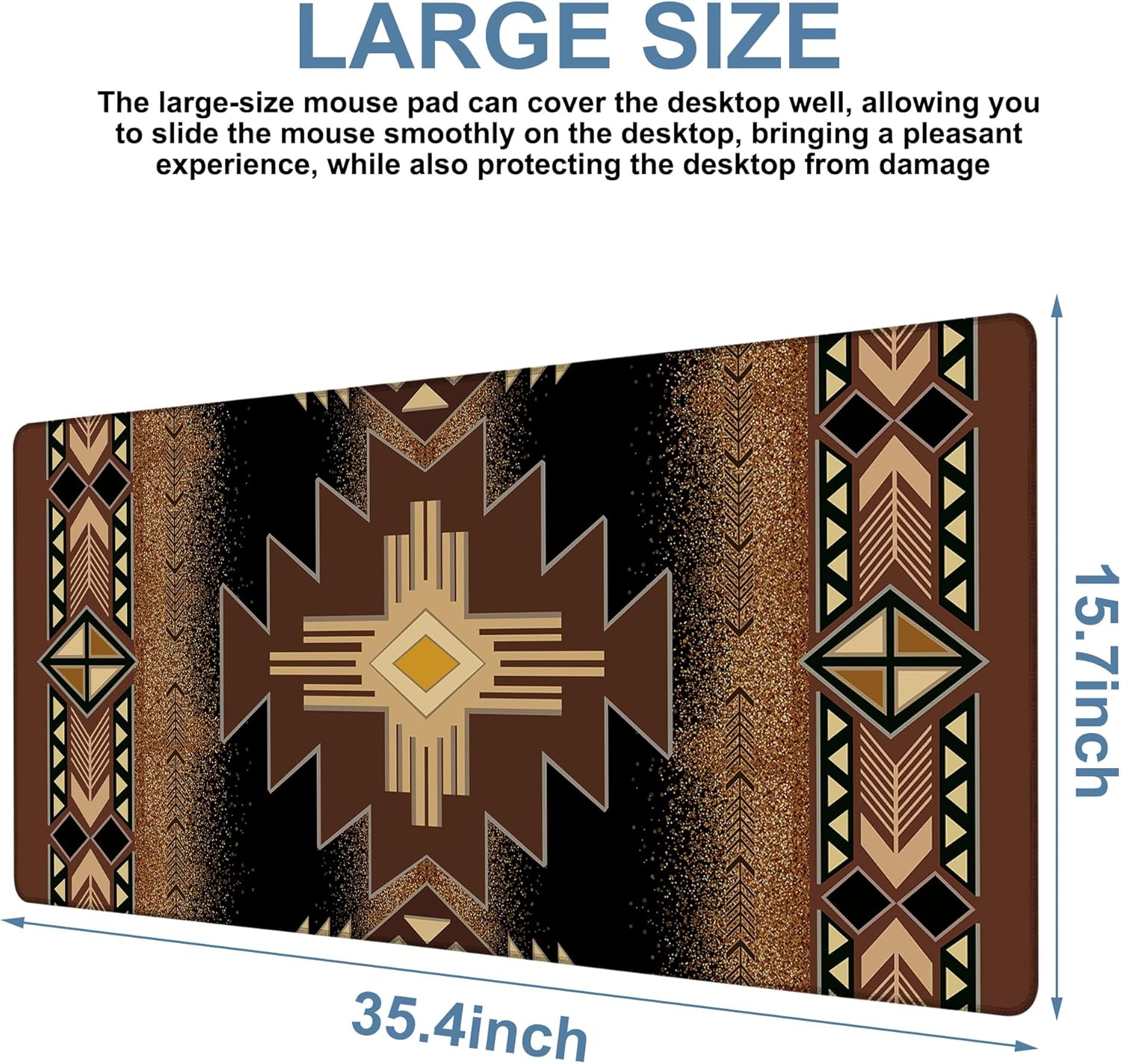 Large Mouse Pad Aztec Pattern Gaming Desk Pad Computer Keyboard Non-Slip Waterproof Mouse Mat with Rubber Base and Stitched Edges Entertainment Office Writing Desk Mat 35.4 x 15.7 Inches