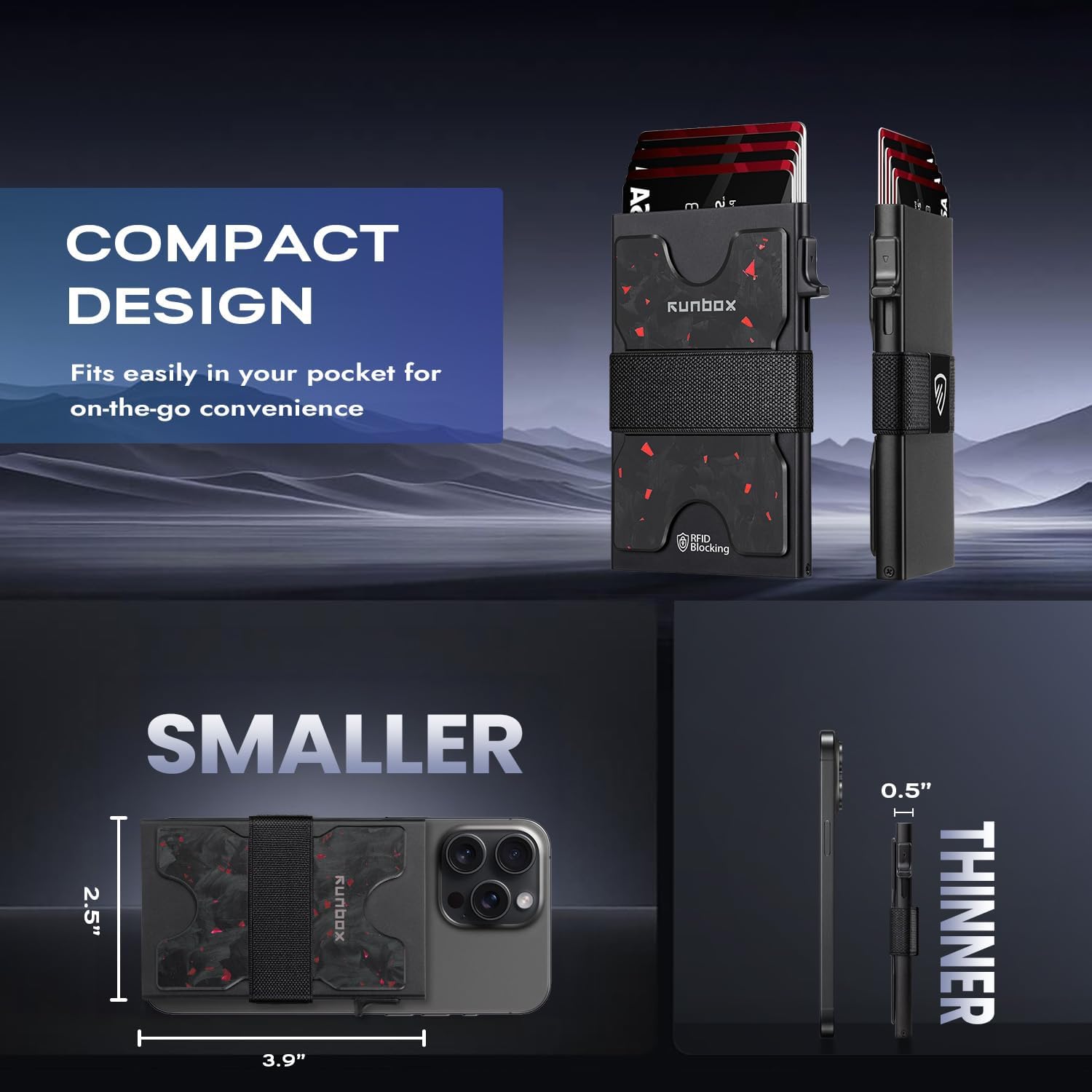 - Quick Access & Expandable Capacity (Holds 1-12 Cards): Experience effortless card access with our patented pop-up button mechanism β press to instantly eject cards. The main aluminum card holder compartment holds 4-6 cards(depending on embossed designs), while the expandable metal backplate adds 6-8 extra slots. *Total capacity varies with card thickness