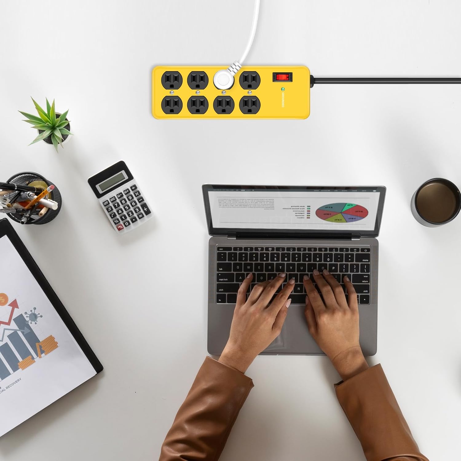 - Security Protection:This power strip features a built-in 2700J surge protector and 15A circuit breaker overload protection,short circuit protection,overcurrent protection,overvoltage protection,and overheat protection.The surge protector with overload protection protects your appliances from lightning,surges,or spikes,and when the voltage surge is overwhelming,it automatically cuts off the power to protect connected equipment.