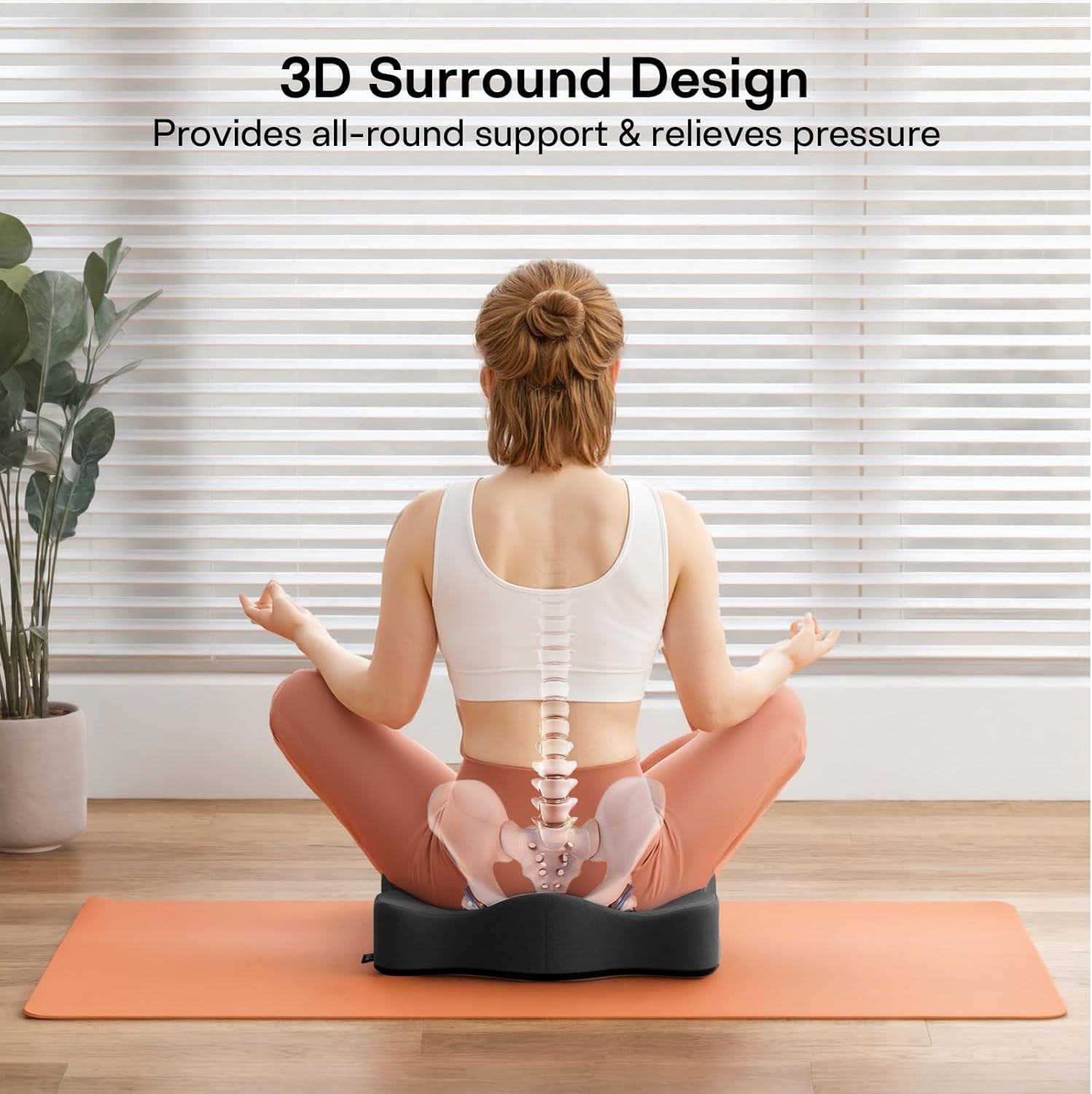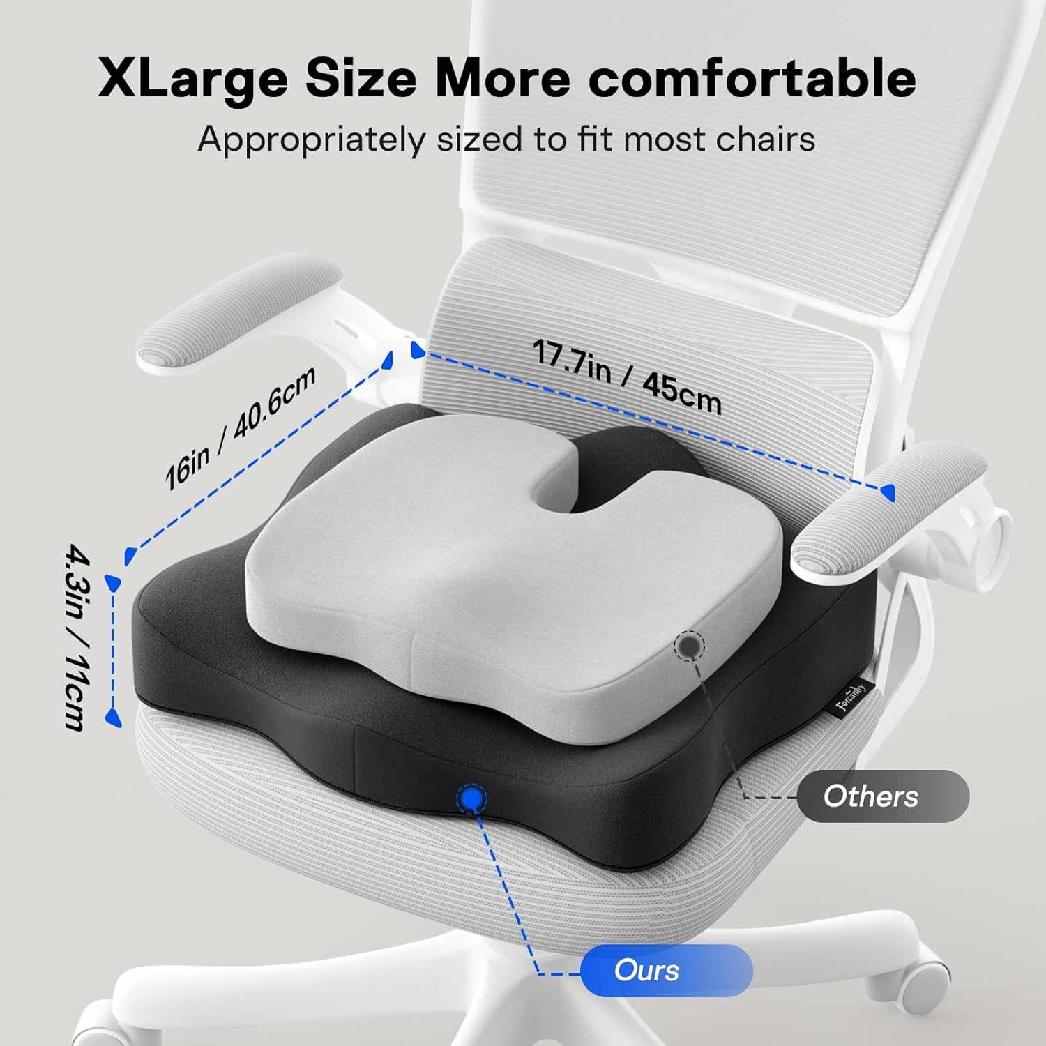 - 【Ergonomic Seat Cushion for Office Chair】Designed with orthopedic contours, this chair cushion for back pain provides full hip support and all-day sitting comfort. Perfect for office chair seat cushions, gaming chair cushions, or airplane seat cushions, it targets sciatica, tailbone pain, and butt cushion needs caused by prolonged sitting.
