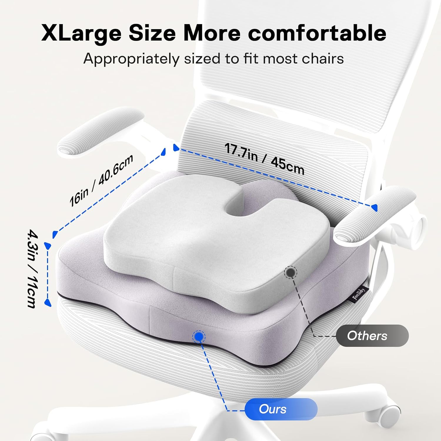- 【Widely Practical】At 18.1"×16.5"×4.3"/2.36", this pressure relief seat cushion fits office chairs, car seats, wheelchairs, and more. Use it as a coccyx cushion for tailbone pain, seat cushions for office chairs, or memory foam seat cushions for office chairs—all while enjoying the included travel-friendly storage bag.