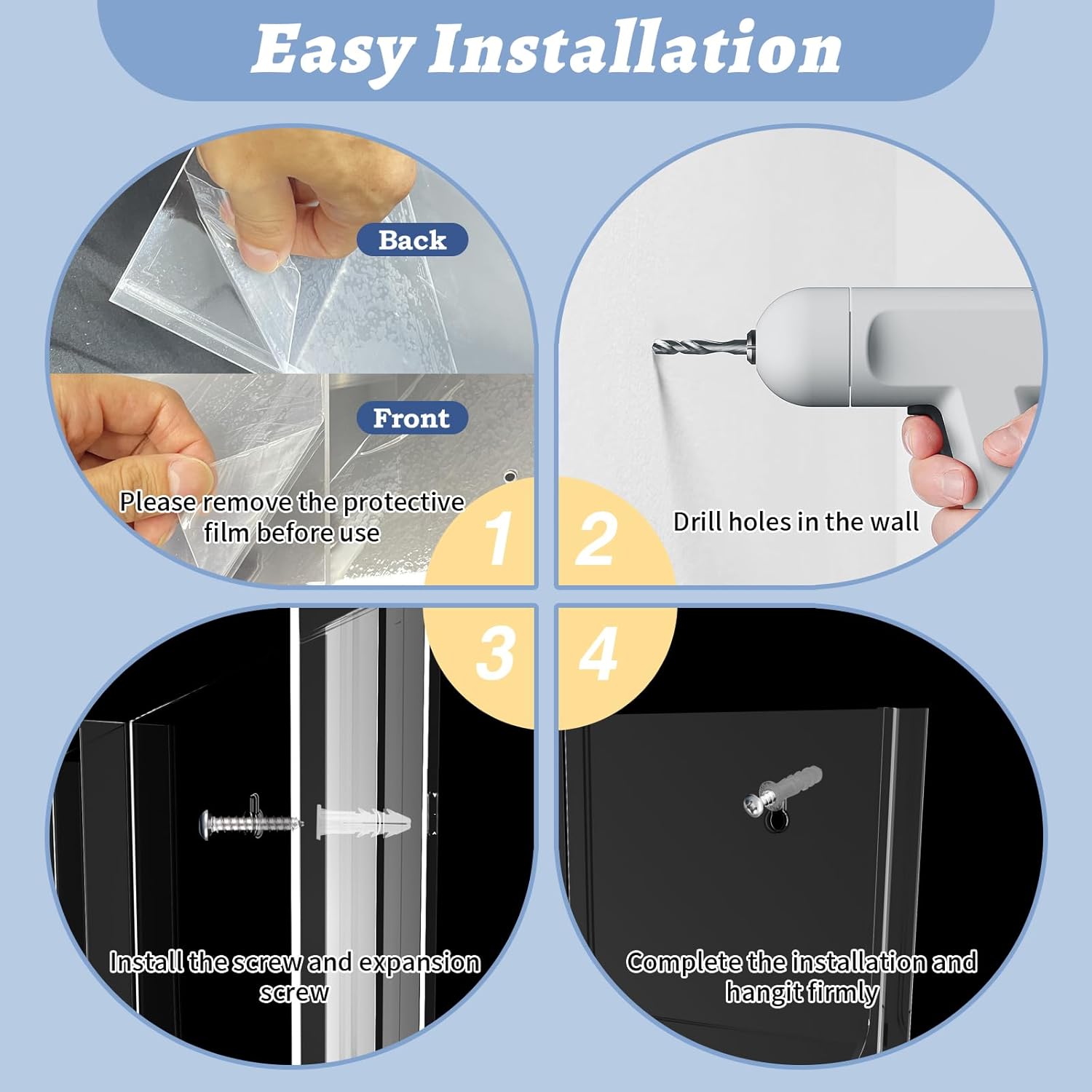 - Packing List: Includes wall-mounted magazine brochure holders, all necessary installation hardware (screws & expansion screws), plus clear step-by-step instructions for quick and easy setup