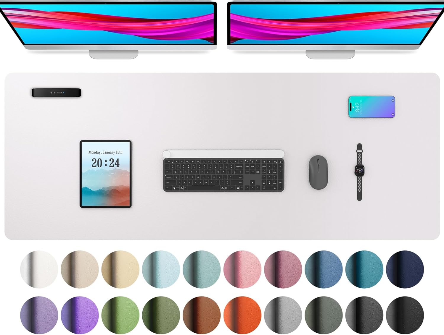 Aothia Large PU Leather Desk Pad Protector – Non-Slip Mouse Pad & Writing Mat for Office/Home, Waterproof, Easy to Clean (48" x 17", Pale Lavender White)