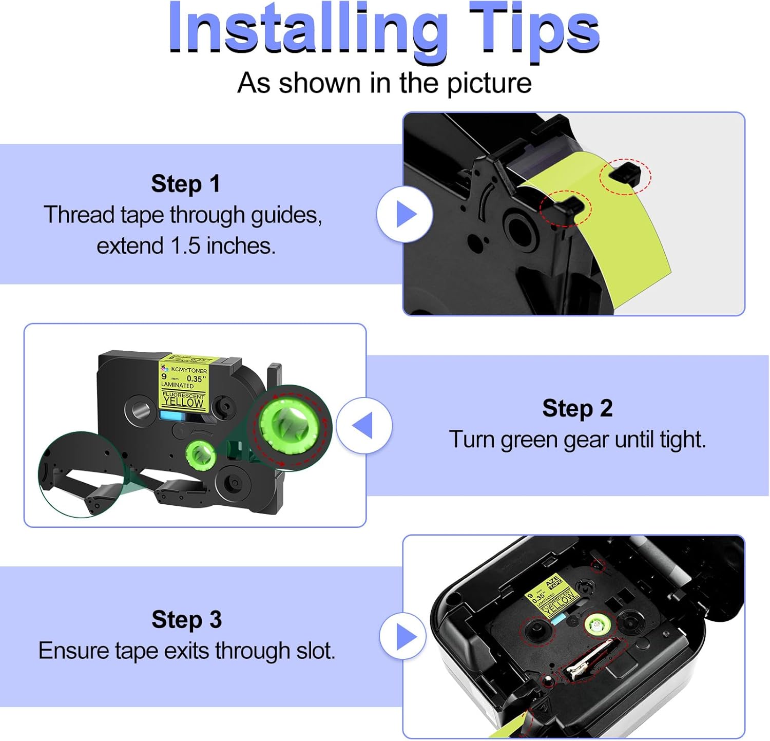 - Package Included: 2 pack KCMYTONER compatible for ptouch TZe-C21 TZ-C21 TZeC21 TZC21 laminated label maker tape; color: black text on fluorescent yellow tape; size: 9mm (3/8 inch) x 5m (16.4 feet)