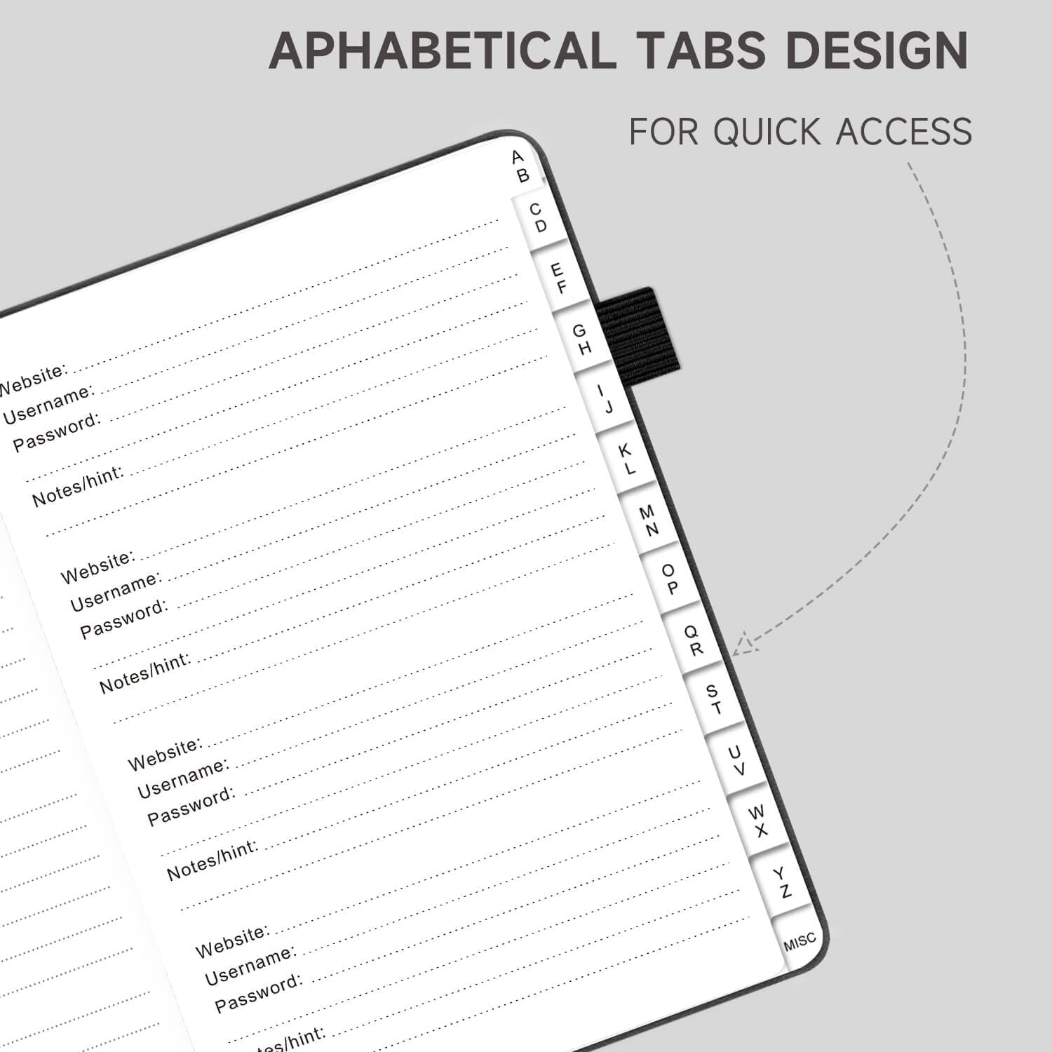 Password Book with Alphabetical Tabs – Hardcover Internet Address & Password Organizer – Password Keeper Notebook for Computer & Website – 7 x 10" Log-in Password Journal w/Thick Paper (Black)