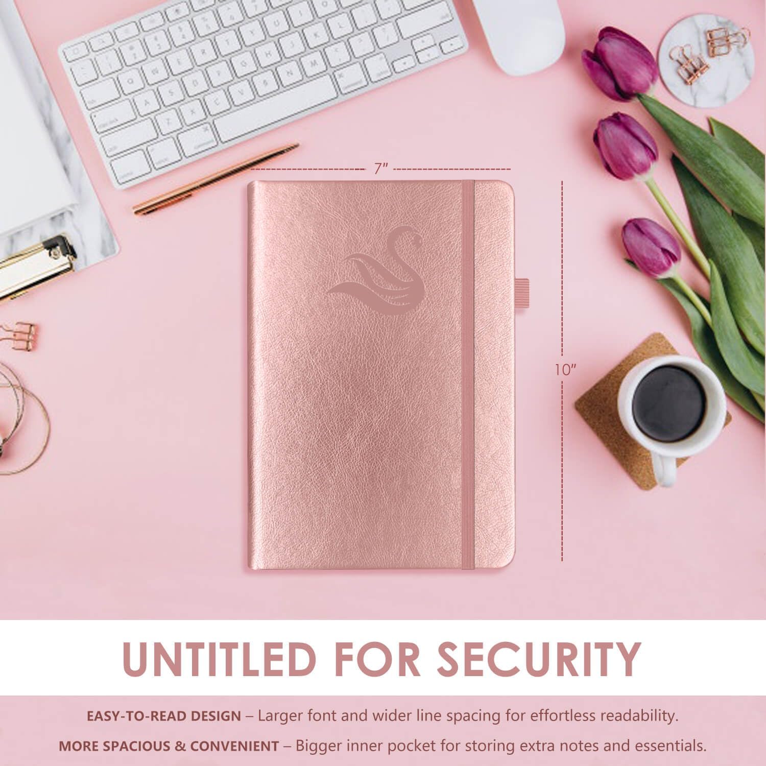 Elegant Password Book with Alphabetical Tabs - Hardcover Password Book for Internet Website Address Login - 7" x 10" Password Keeper and Organizer w/Notes Section & Back Pocket (Rose Gold)