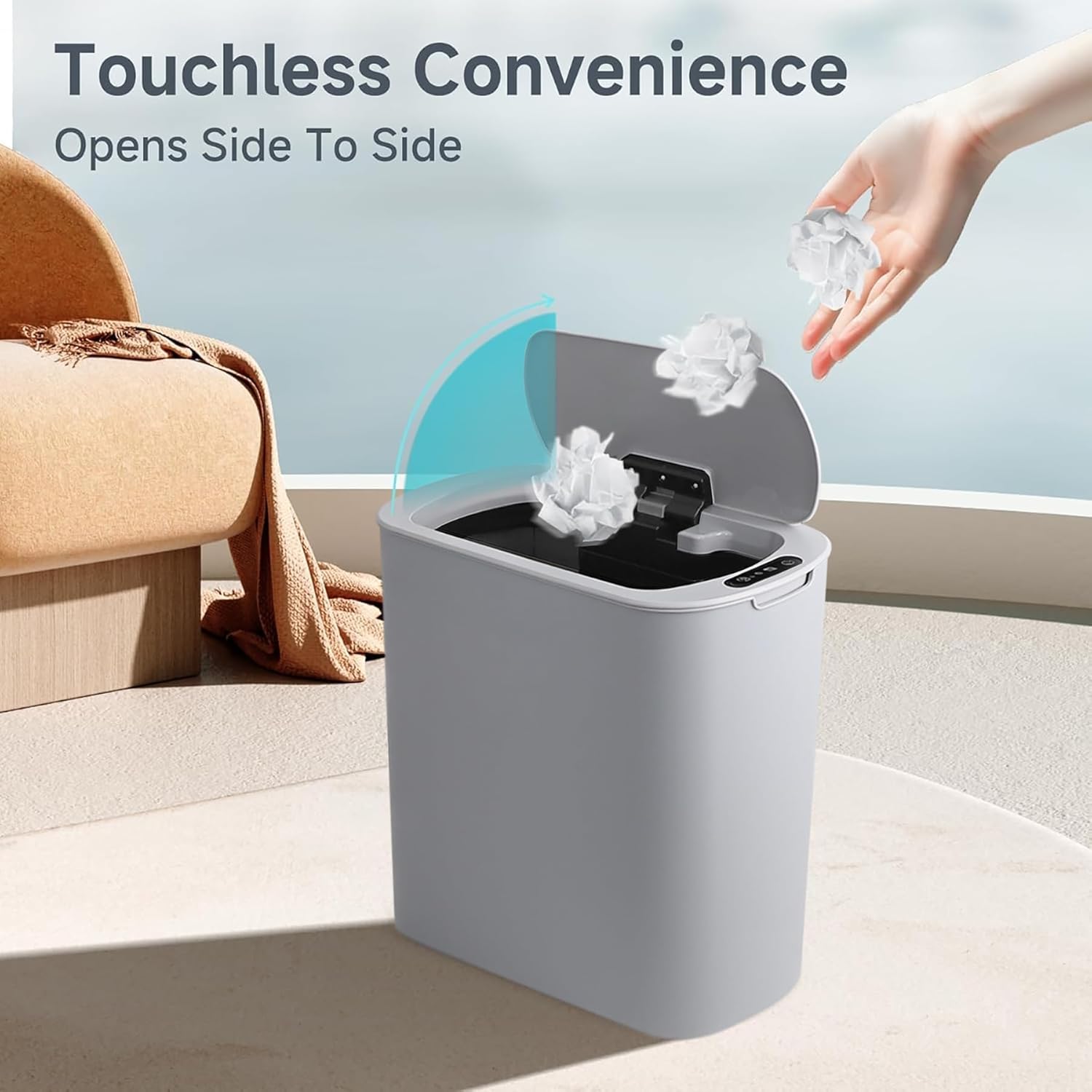 Automatic Motion Sensor Bathroom Trash Can with Lid, 2.6 Gallon Touchless Trash Bin, Smart Garbage Can Plastic Slim Wastebasket for Bedroom, Office, Dorm (Grey)