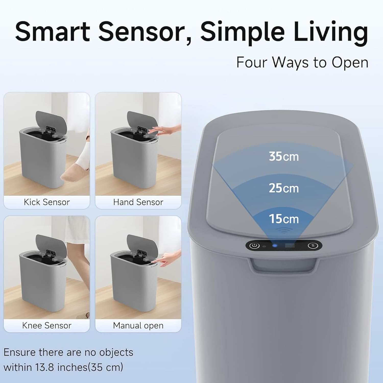 - γPerfect for Narrow SpacesγThe slim design of our smart trash can make it ideal for small spaces, fitting perfectly into corners and narrow areas in office, bedroom and bathroom, etc. Get it now to improve the space utilization!