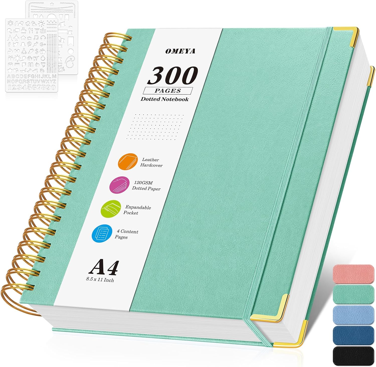 - 【Thoughtful Dot Grid Journal Notebook】Bullet Journaling notebook includes an elastic closure band to keep it securely closed and features an expandable back pocket for storing loose notes or cards. Additionally, it comes with 24 colorful tabbed stickers for easy sectioning and note classification, perfect for school, office, home, work organization, college, business, adults. Additionally it comes with 2 journal stencils for DIY your journaling.