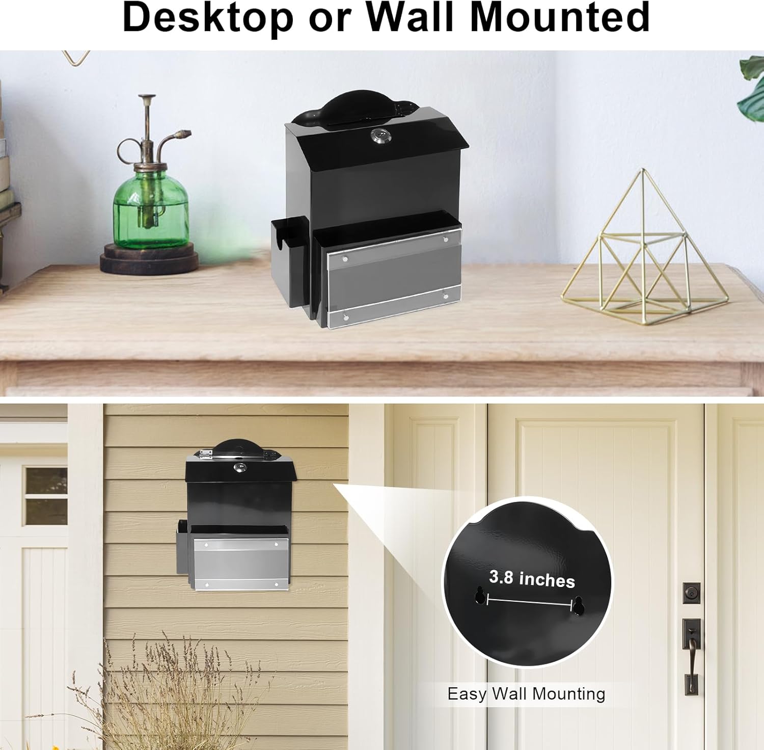 - 【LARGER CAPACITY】Apart from the capacity of the donation box itself (7.2x3.5x8.5 inches), we have also designed two compartments, the front compartment (6.7x0.8x3.9 inches) and the side compartment (2.9x0.8x2.9 inches), to expand the capacity and accommodate suggestion cards, cash, envelopes, ballots, lottery tickets, etc