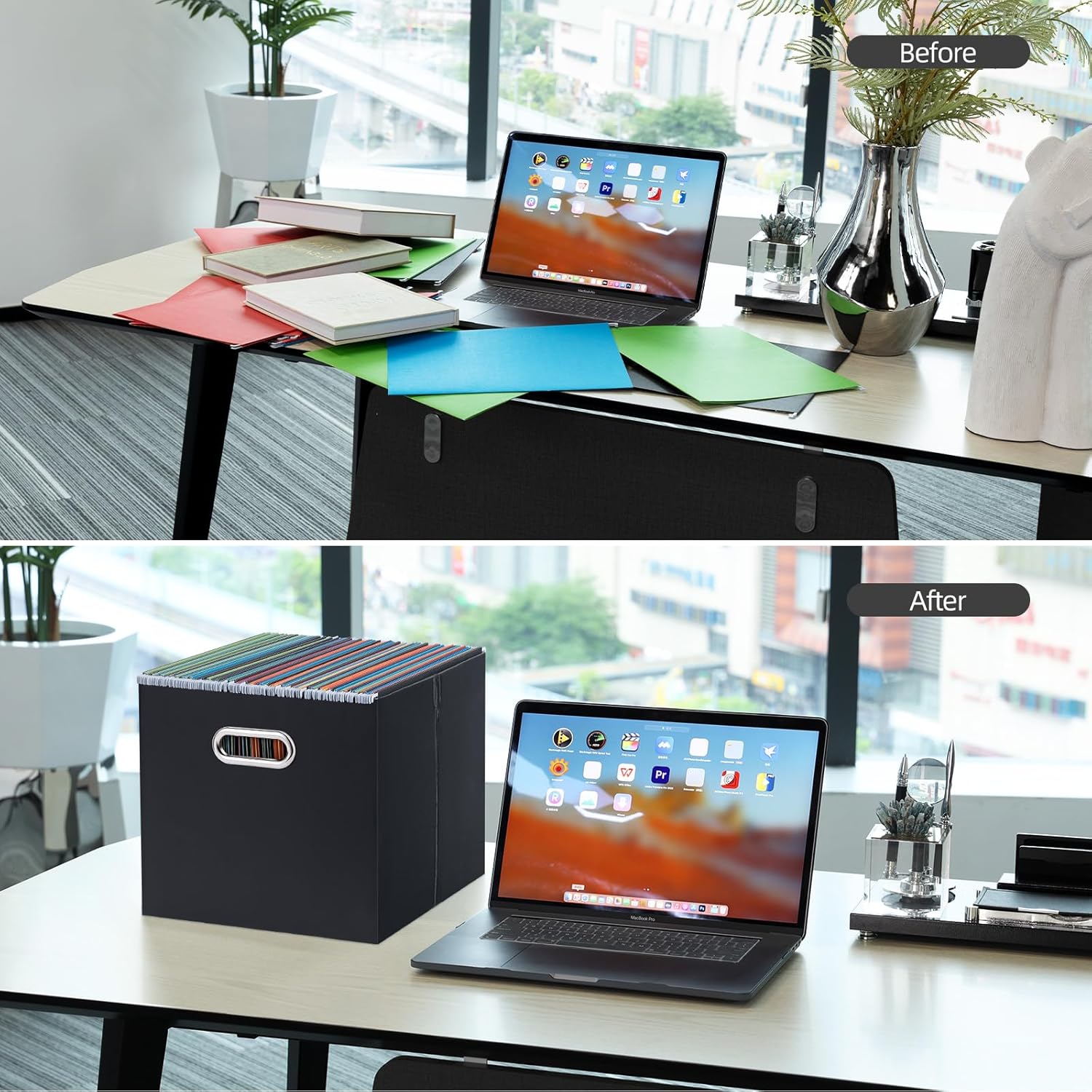 Oterri File Organizer, 1 Pack Large Storage Box, Cardboard File Folder Organizer, Collapsible File Box for Hanging File Folders Letter Size, Portable Filing Organizer with Handle (Black)