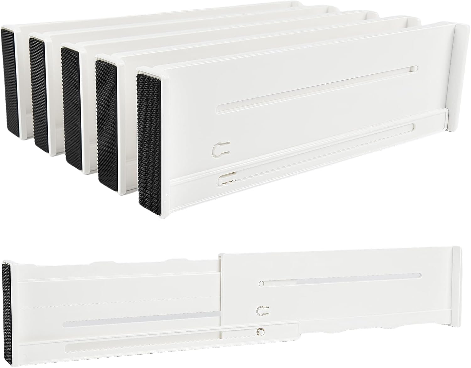 - 5-Pack Value Set for Max Storage: Optimize space with white dividers (10.6" base fits nightstands; 17.7" extends for pantries). Combine units as silverware trays, sock compartments, or gadget organizersβslim design maximizes shallow drawer storage!