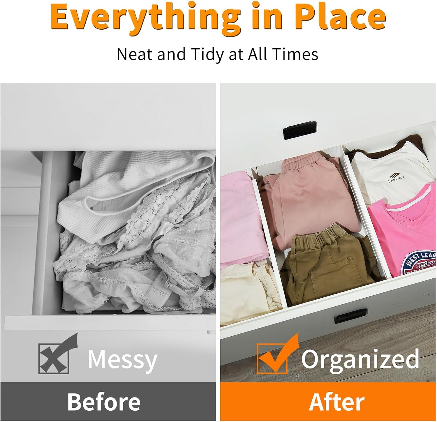 - Quick Install & Reusable for Renters: Damage-free setup in seconds! Stretch, slide, and lock these adjustable drawer dividersβchild-safe edges and lightweight design perfect for dorms/apartments. Withstand daily wear; reposition endlessly for clutter-free drawers!