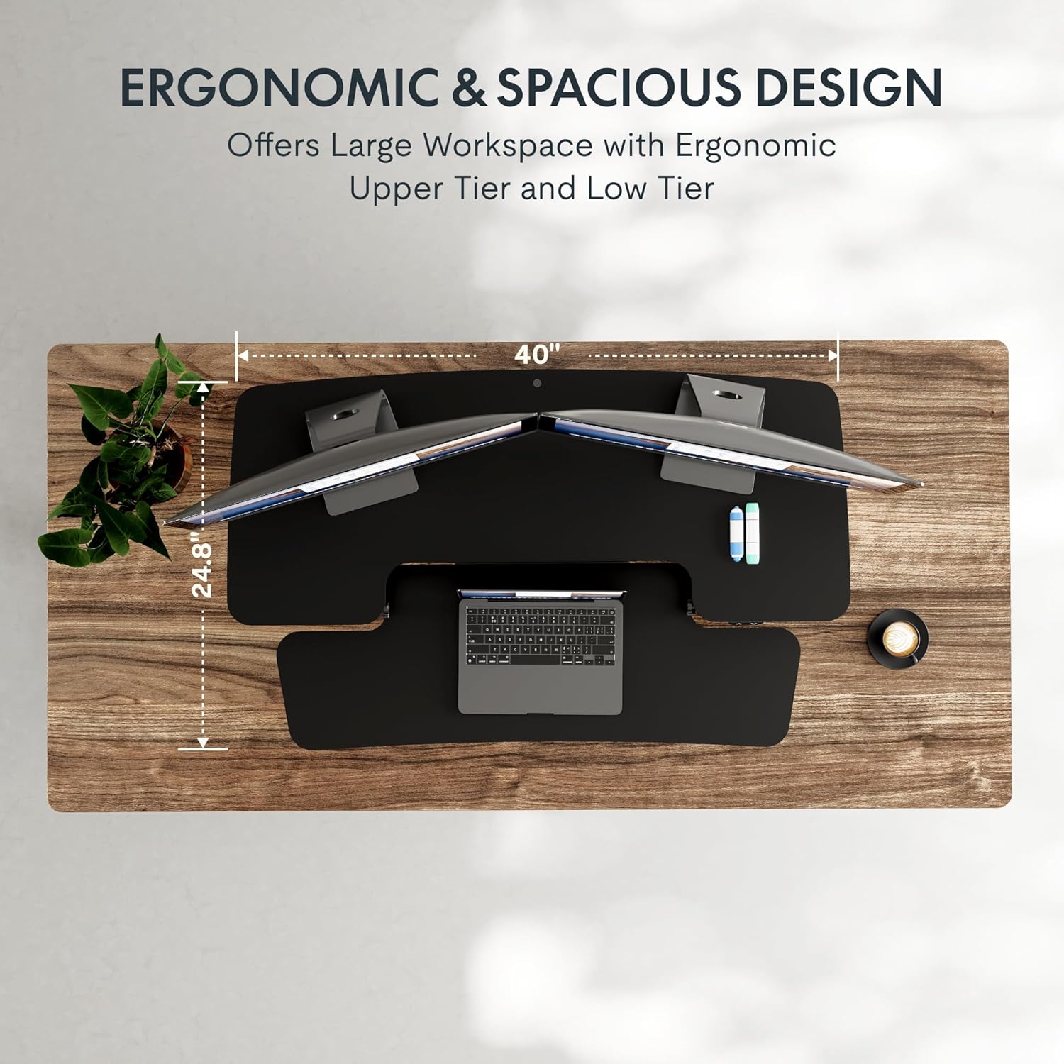 - True Ergonomic Relief β Say goodbye to back, neck, and wrist pain! This desk riser for standing promotes healthy posture with smooth, controlled transitions between sitting and standing, reducing fatigue and keeping you comfortable for hours.