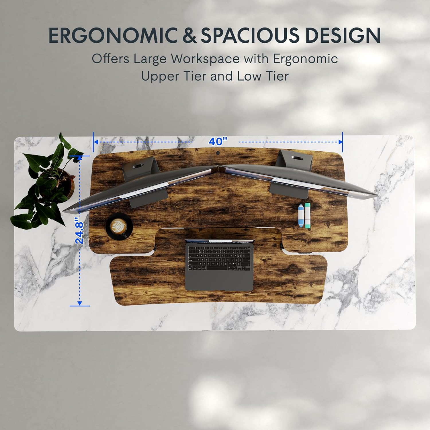FLEXISPOT 40 inch Electric Motor Desk Converter, Sit to Stand Monitor and Laptop Workstation, Height Adjustable Riser with Wide Keyboard Tray, Rustic Color