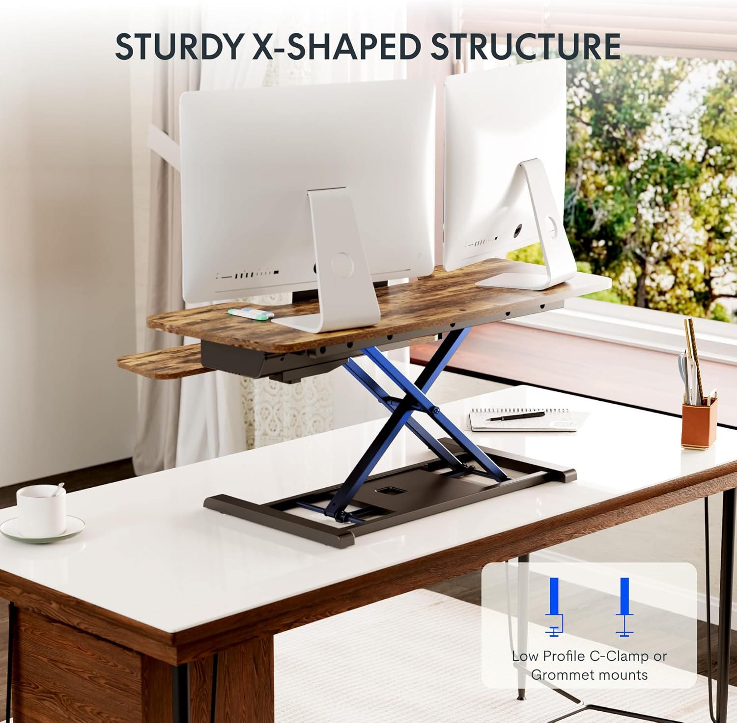 - True Ergonomic Relief β Say goodbye to back, neck, and wrist pain! This desk riser for standing promotes healthy posture with smooth, controlled transitions between sitting and standing, reducing fatigue and keeping you comfortable for hours.