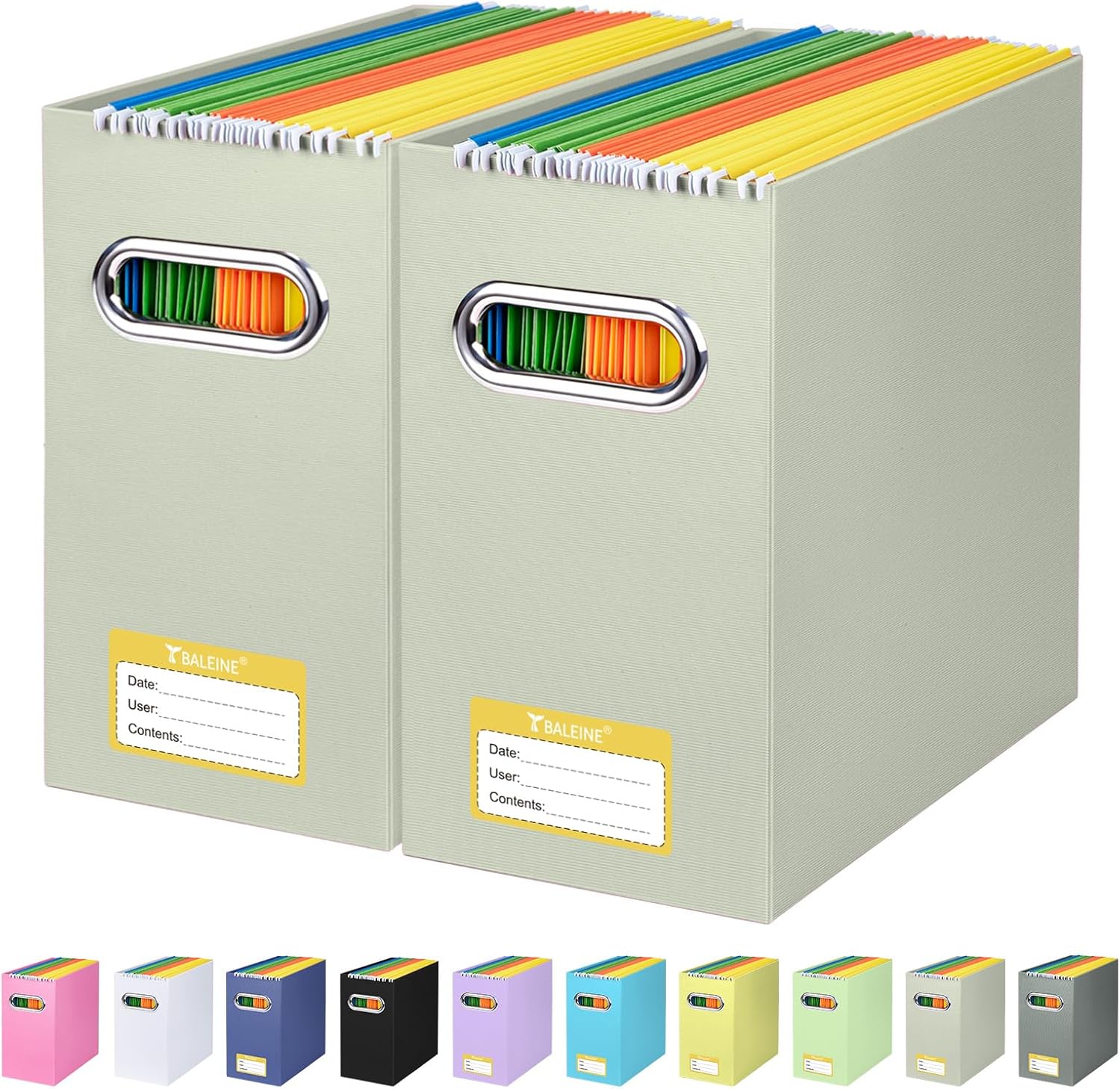 - UNIVERSAL SIZE: BALEINE File box with handles is suitable for letter size files; Designed for efficiency and functionality, itβs ideal for storing and organizing your paper documents, notebooks, and magazines (NOTE: Folders not included)