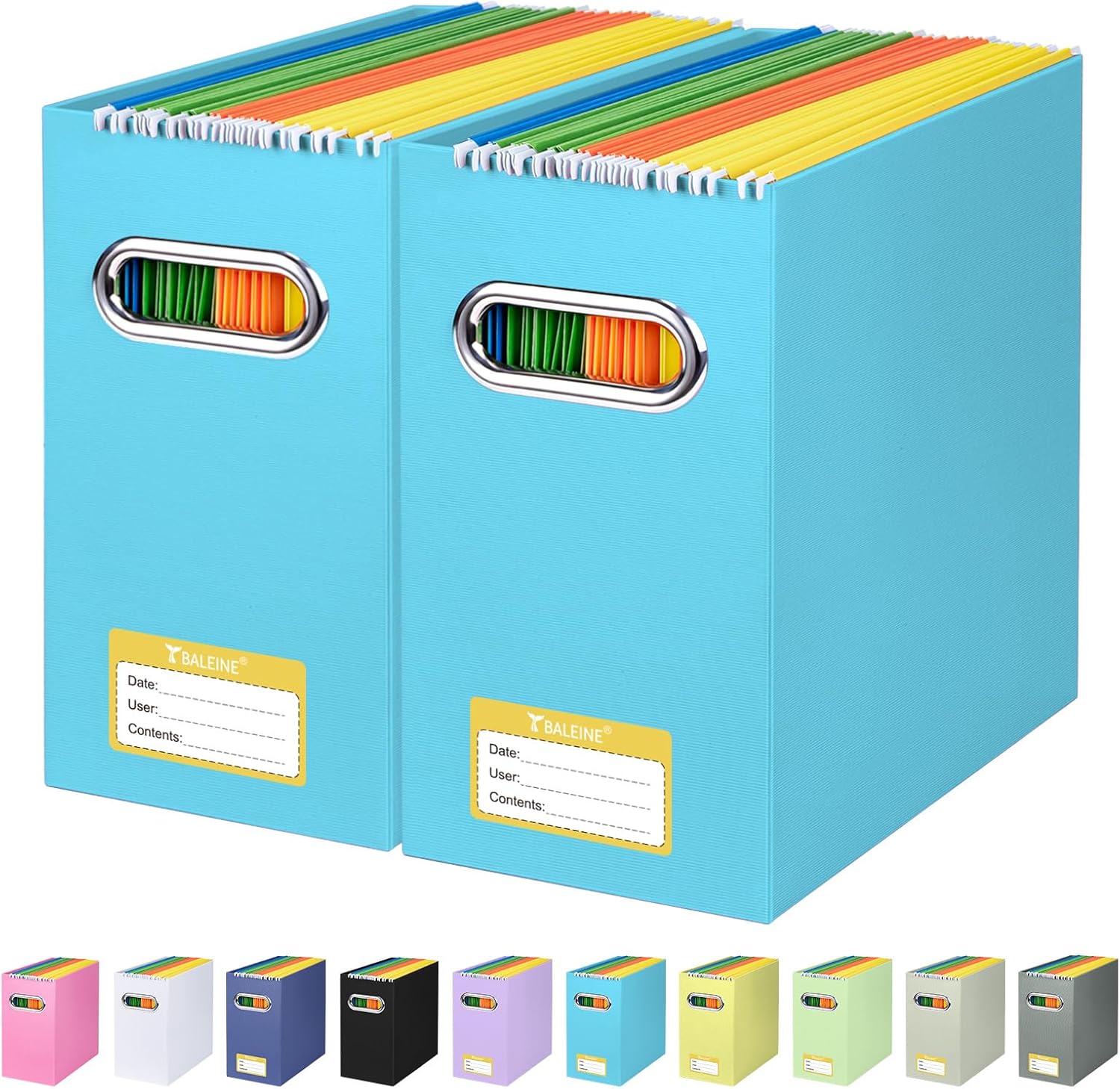 - UNIVERSAL SIZE: BALEINE File box with handles is suitable for letter size files; Designed for efficiency and functionality, itβs ideal for storing and organizing your paper documents, notebooks, and magazines (NOTE: Folders not included)