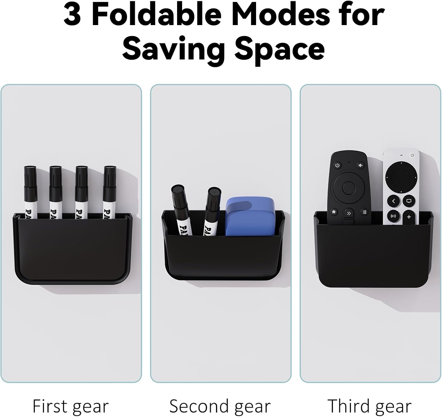 - γFoldable Function for Space SavingγThere are 3 foldable modes for this magnetic pen holder, so that can organize different size items, such as pens, penciles, dry erase markers, scissors and the remote controls. Foldable functions will hold items more firmly, no falling out. Stay organized and maximize space.