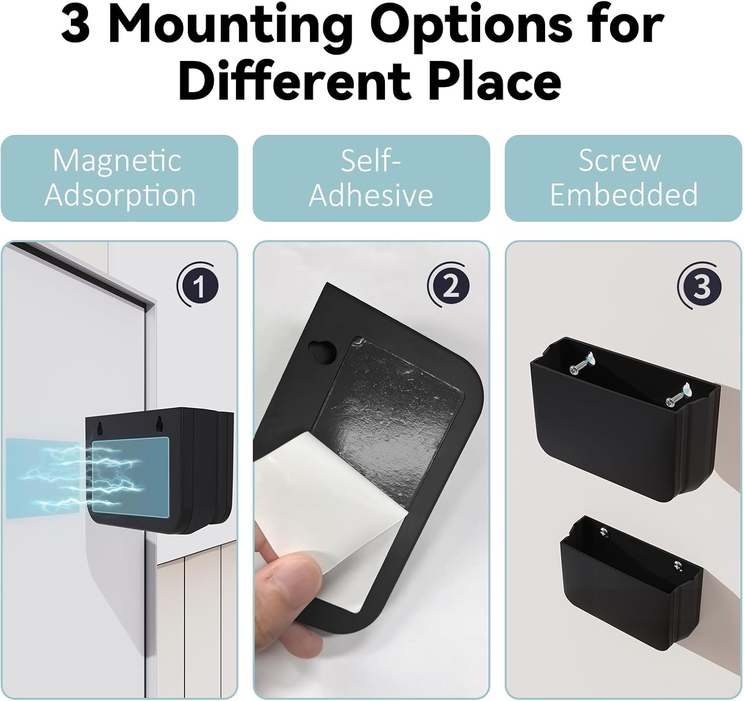 - γEasy Installationγ3 mounting options, so that you can install the magnetic dry erase marker holder for any place. Full magnet on the organizer back, you can easily use the magnetic adsorption for metal surface. Come with 3M self-adhesive transparent tapes, just peeling off the adhesive bakcing and attach it on the magnet, work on glass, wood, tile surface. The 2 screw embedded are for the cement wall surface. Easy take and put item for any places.