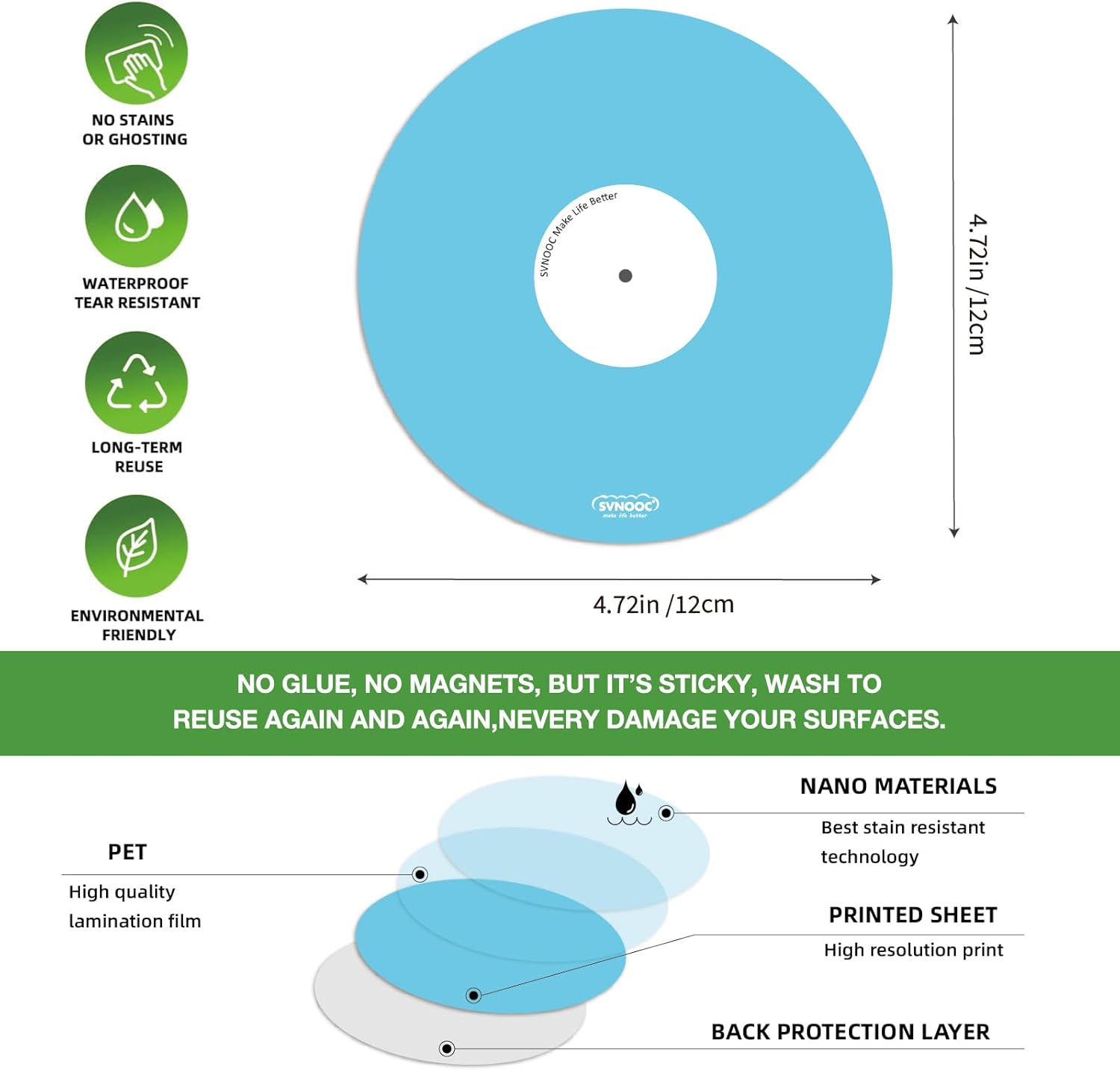 Dry Erase Sticky Notes Multi-Use Label Stickers for Desk, Wall, Fridge, Reminders, Labels, Lists, Removable &Reusable, 12 Pack (5" in Circle Multicolor)