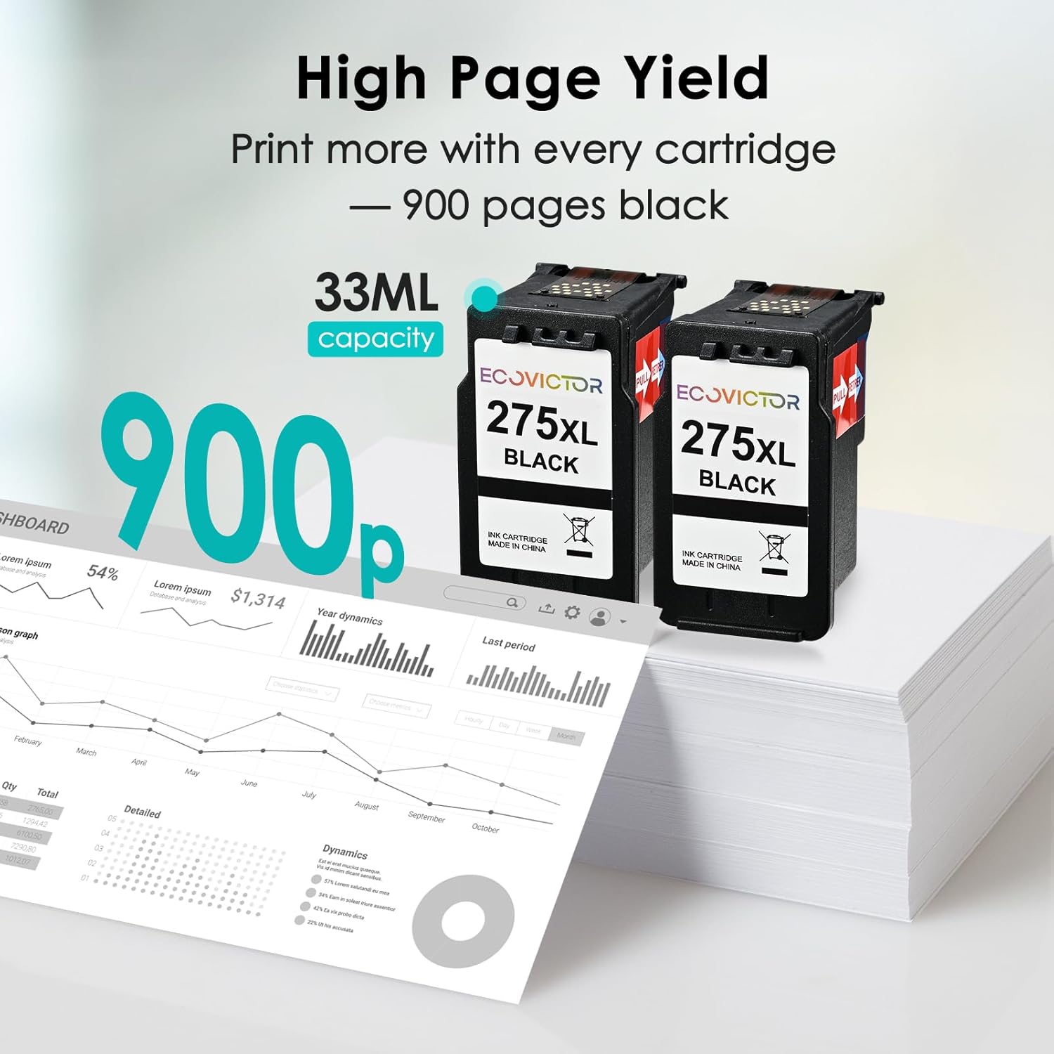 - Long-Lasting Page Yield: EcoVictor pg-275xl black ink cartridge for canon 275xl black ink cartridge prints up to 450 pages each (at 5% coverage). EcoVictor for canon pg-275 black ink cartridge is perfect for home, school, or office use. Enjoy long-lasting printing performance without the hassle of frequent replacements.