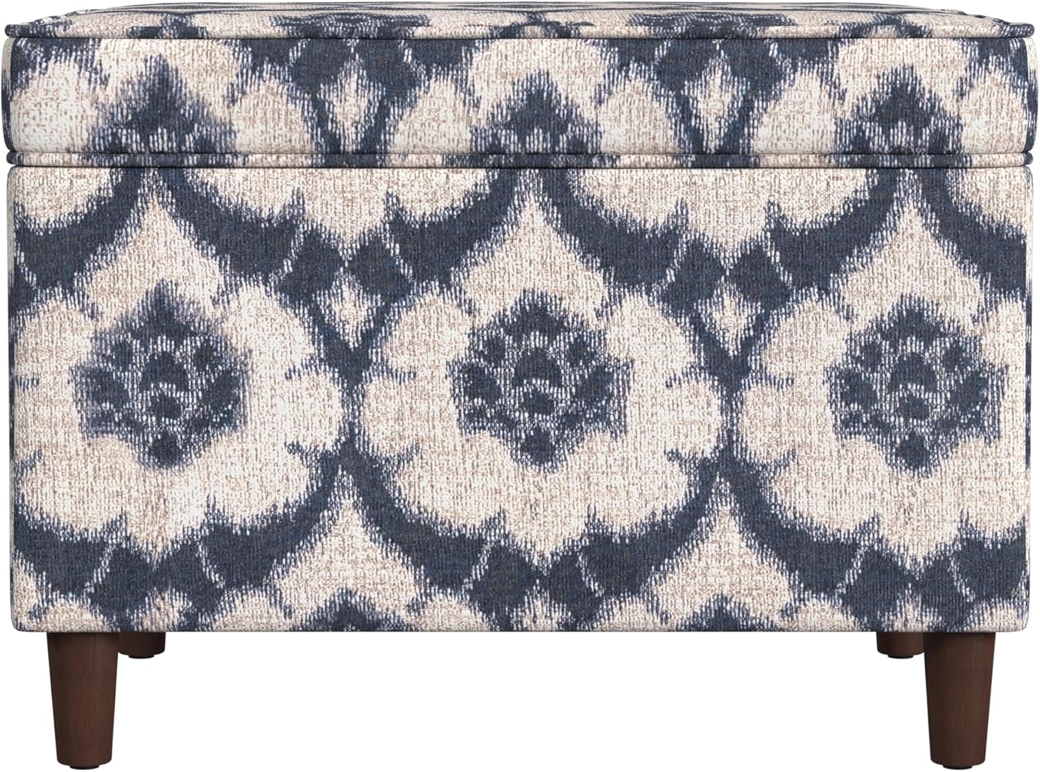 - Elegant & Functional Design β This Spatial Order Rectangular Storage Ottoman features a classic Blue Medallion Print fabric, paired with mid-tone walnut-finish wooden legs, adding a stylish and decorative touch to any space.
