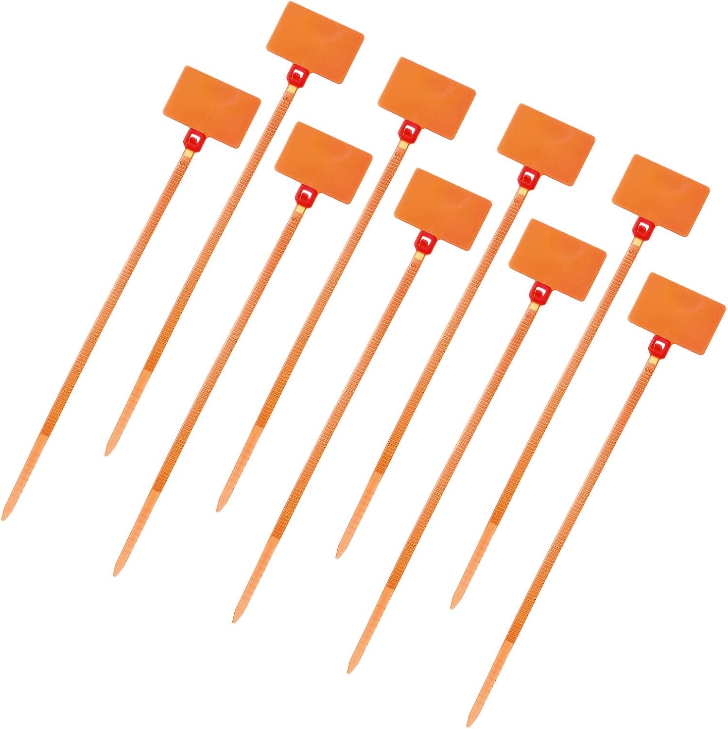 uxcell 100 Pcs Cable Label Marker Tags, Nylon Cable Zip Tie Tags 8.7 Inch Writable Self-Locking Wire Labels Zip Ties for Organization Marking, Orange