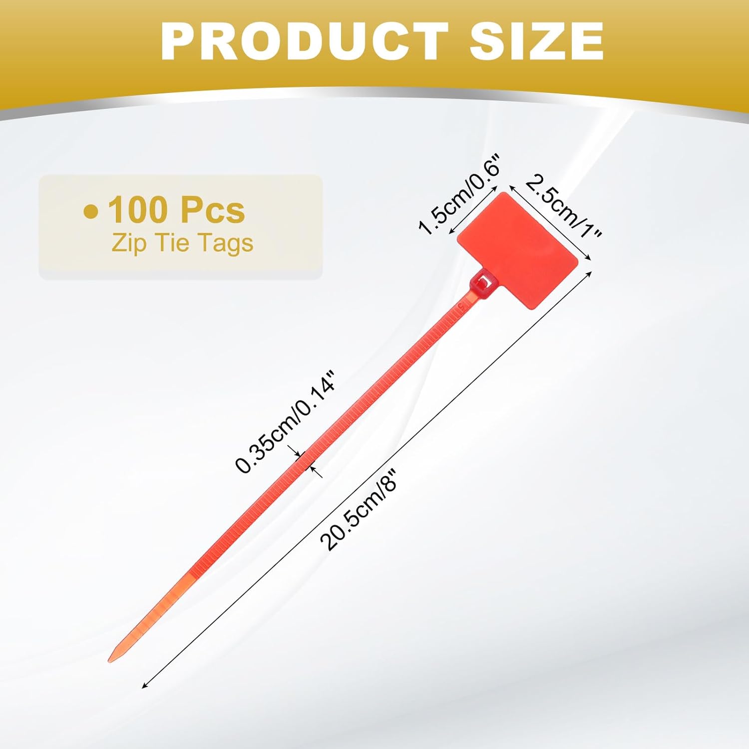 uxcell 100 Pcs Cable Label Marker Tags, Nylon Cable Zip Tie Tags 8.7 Inch Writable Self-Locking Wire Labels Zip Ties for Organization Marking, Red