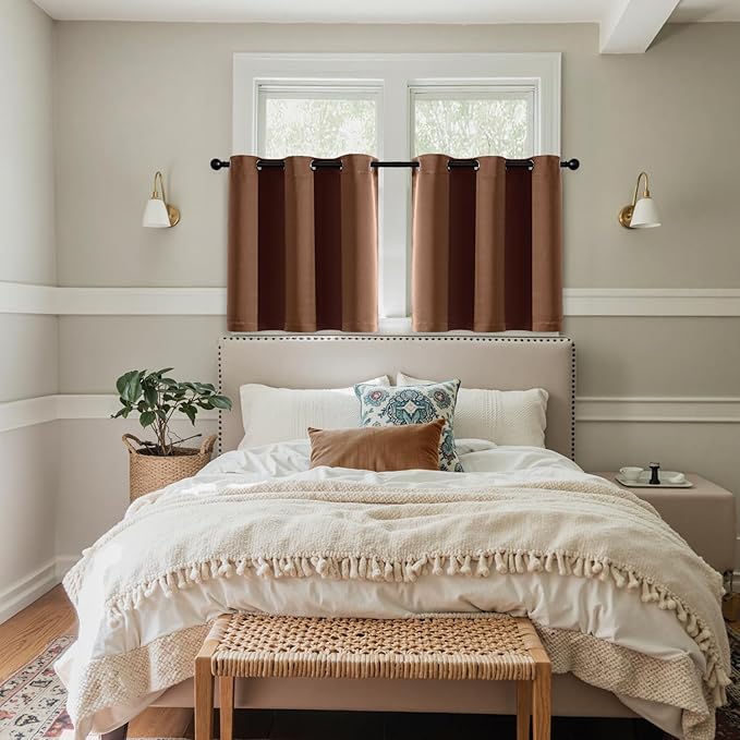 MIULEE Short Curtains for Windows - Mocha Brown Blackout Half Window Curtains Thermal Insulated Privacy Drapes for Kitchen Bedroom Bathroom Grommet Top Small Basement Tiers W40 x L36 Inch 2 Panels