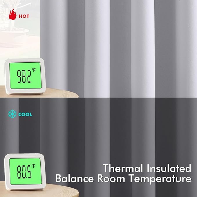 - High-Quality Material: Crafted from high-quality 225GSM polyester fabric, these curtains offer enhanced durability and elegant drape. The soft blackout material features triple-layer weaving technology, with a middle layer of black yarn for superior light blocking and privacy. Both sides feature the same refined color, ensuring a seamless look that elevates your homeβs aesthetic with understated sophistication