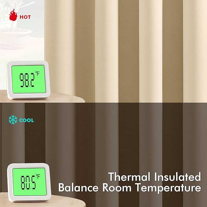 - High-Quality Material: Crafted from high-quality 225GSM polyester fabric, these curtains offer enhanced durability and elegant drape. The soft blackout material features triple-layer weaving technology, with a middle layer of black yarn for superior light blocking and privacy. Both sides feature the same refined color, ensuring a seamless look that elevates your homeβs aesthetic with understated sophistication