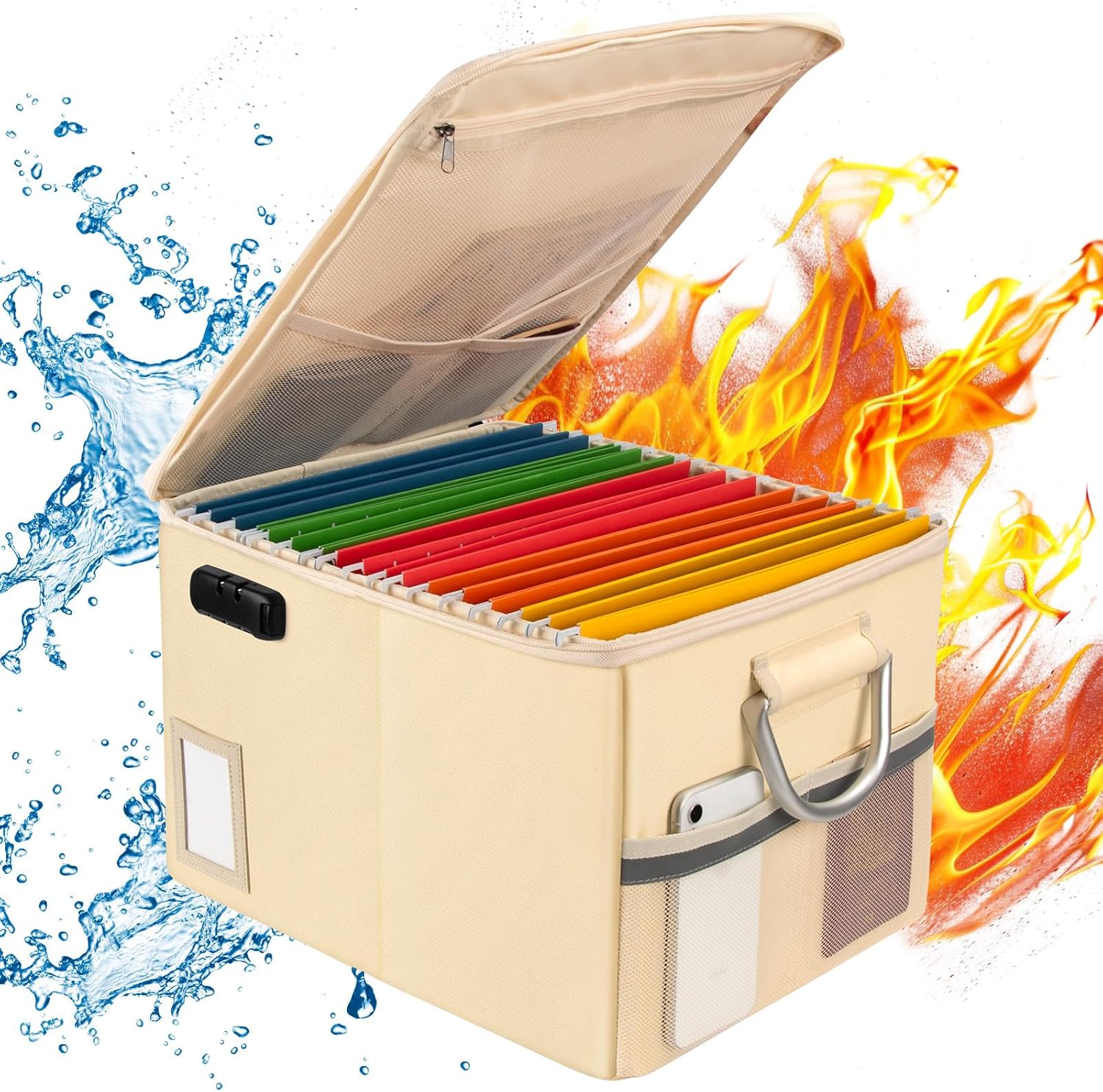 - Fireproof and water-resistant safe: The exterior material of Fireproof File Box is made of upgraded anti-static silicone coated fiberglass, which can withstand temperature up to 2000β. Fireproof Document Box is not only fireproof but also highly water-resistant, so you don't have to worry about your important documents getting wet by rain.(Does not include folders)