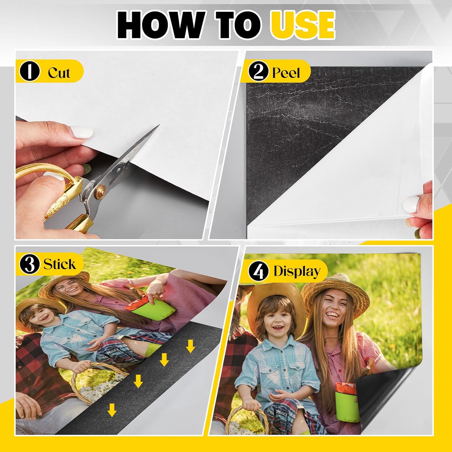 - Easy to Cut: using our magnetic adhesive sheets is easy and convenient; The adhesive backing makes it easy to peel and stick, saving your time for more work; It can be easily cut into custom shapes, suitable for any project big or small; Dive into the world of craft without worrying about the hassle of complicated materials