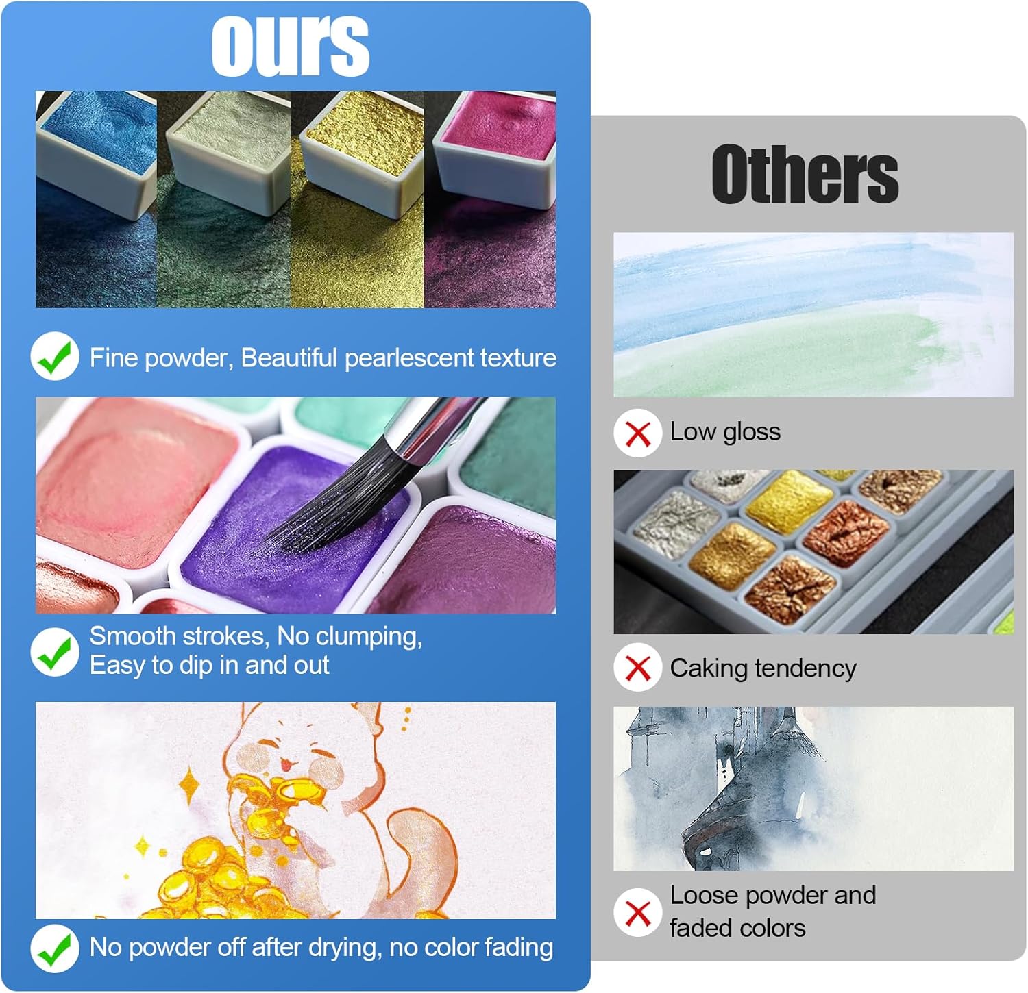 - 【Exceptional Shimmering Texture】: CraftyManor Pearlized Watercolors are formulated with premium, modified mica powder, resulting in a stunningly glossy finish. Free of acids and toxins, they are safe to use and will add a radiant touch to your artwork