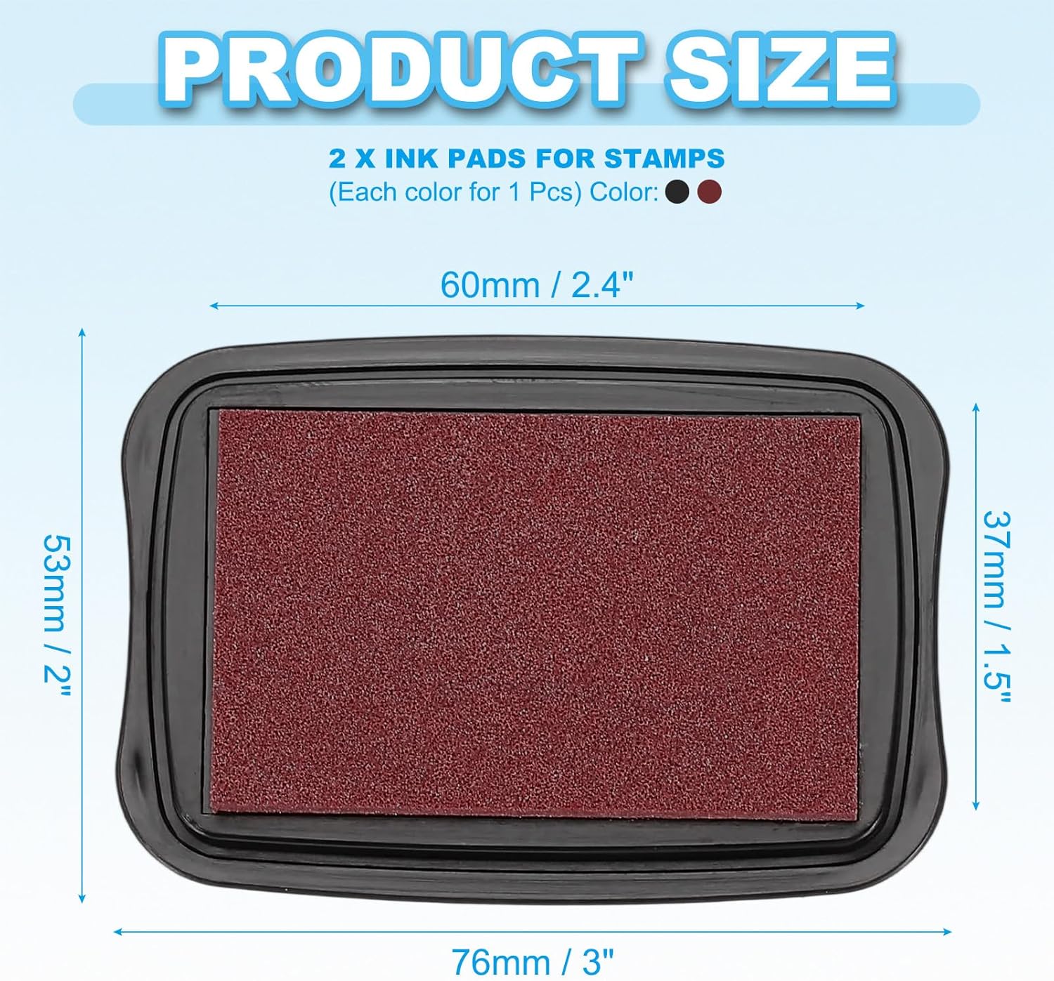 - Color: Copper, Black; Material: Sponge, Plastic; Ink Pad Size: 60 x 37mm / 2.4 x 1.5 inch(L*W); Overall Size: 76 x 53 x 18mm / 3 x 2 x 0.7 inch(L*W*T); Packing List: 2 x Ink Pads for Stamps