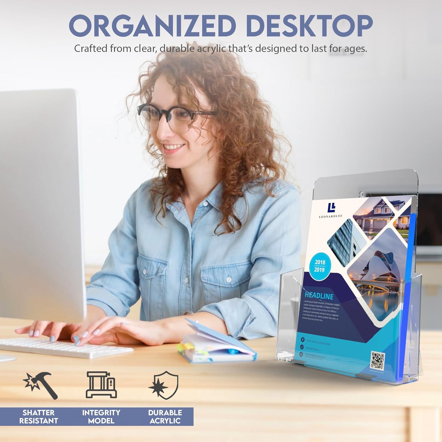 - Versatile Usage: Ideal for a variety of paper types, this multipurpose brochure holder accommodates flyers, bills, booklets, pamphlets, and more, supporting documents up to 8.5 inches wide on any desk or countertop.