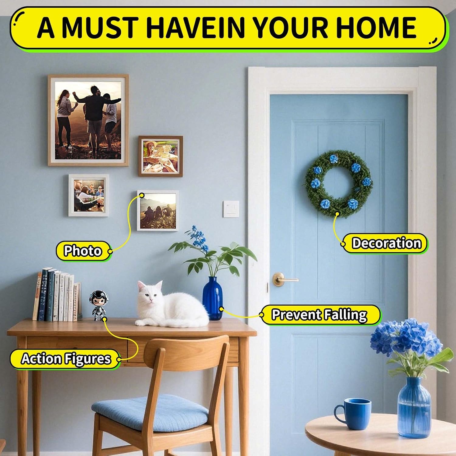 - 𝙀𝙖𝙨𝙮 𝙏𝙤 𝙐𝙨𝙚 & 𝙉𝙤 𝙈𝙚𝙨𝙨: Instant bonding sticky tack dots with no mess, no tools, no need to long wait for the glue to dry, just peel from the adhesive sheet and stick to where you want. You can totally get rid of the mess of traditional liquid glue or adhesive tape. Our clear removable gel glue putty are faster, safer and cleaner.